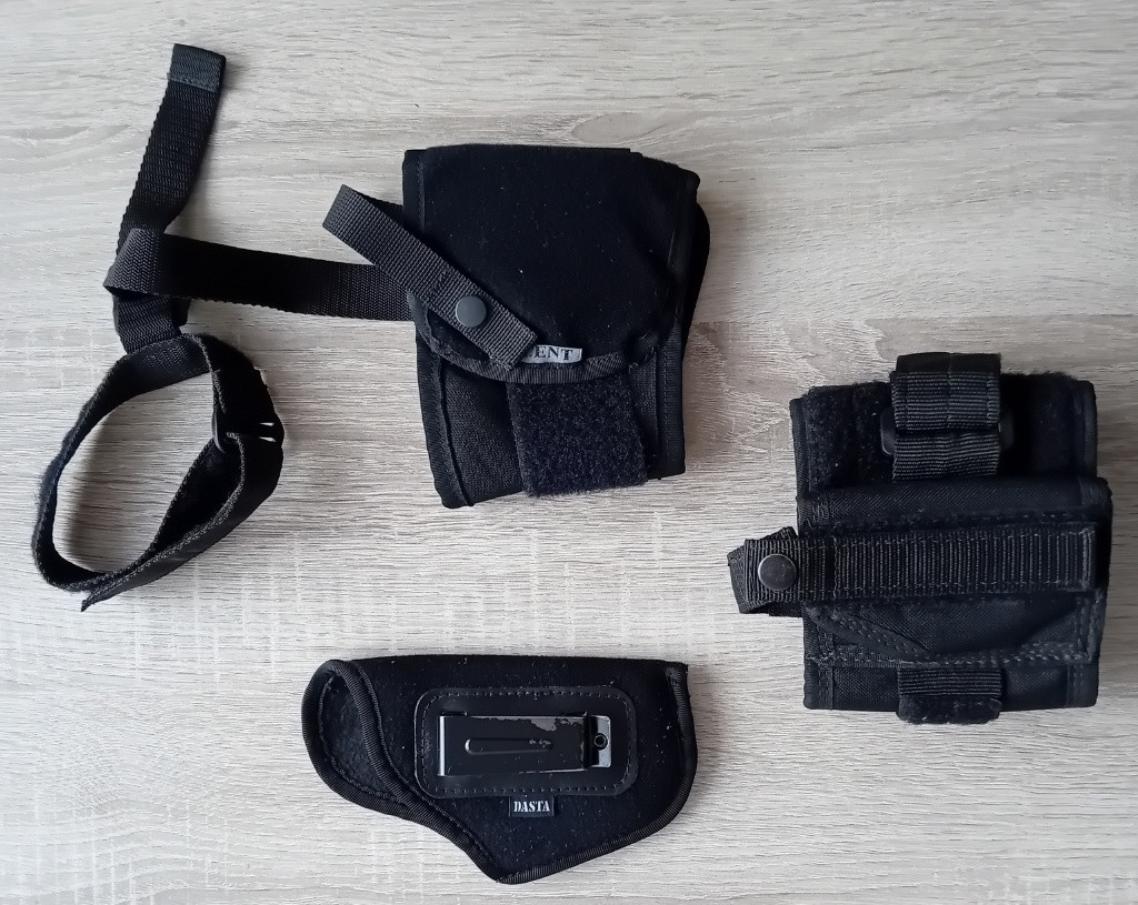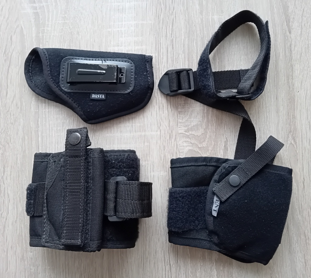 Použitá, ale nepoškozená a funkční. Pouzdro vnitřní opaskové zn. Dasta, vhodné na pistoli typu CZ 82/83, pouzdro kotníkové zn. Ascent, původně na pistoli CZ 50/70, přešité na CZ 82/83, pouzdro kotníkové zn. Blackout Tactical, vhodné pro pistoli typu Kel-Tec P32.