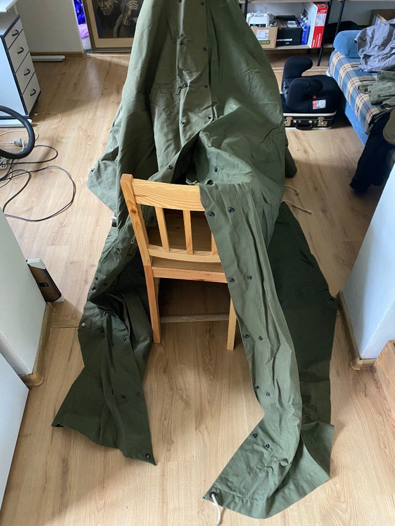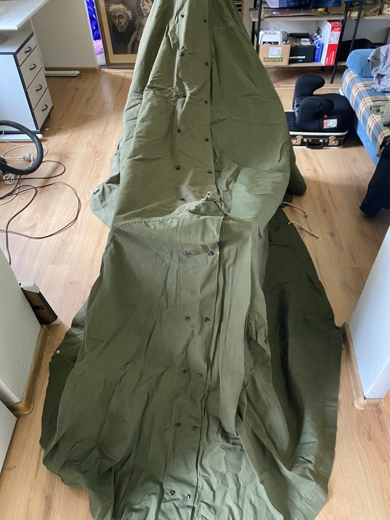 Celta US samostatná ZELENÁ celta používaná US armádou lze použít jako celtu nebo po spojení druhého dílu pomocí dvou řad druků lze postavit přístřešek (stan) ve tvaru A pro dvě osoby (bez podlážky) rozměry: v - 105cm, š - 145cm, d - 225cm materiál: 100% impregnovaná bavlna tyče a kolíky nejsou součástí