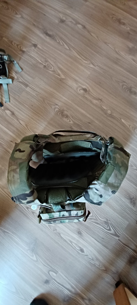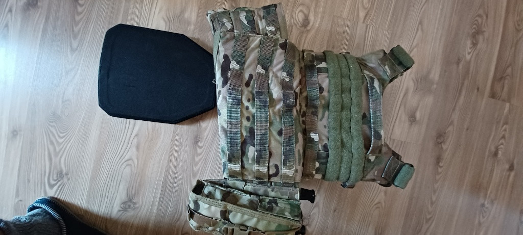 Multicam nosič plátů SSO s pláty třídy Hard armor : NIJ 0101.04 class IV. S antišoky, kapsami sumkami, vysílačkou Baofeng UV 5R. Dohoda jistá.