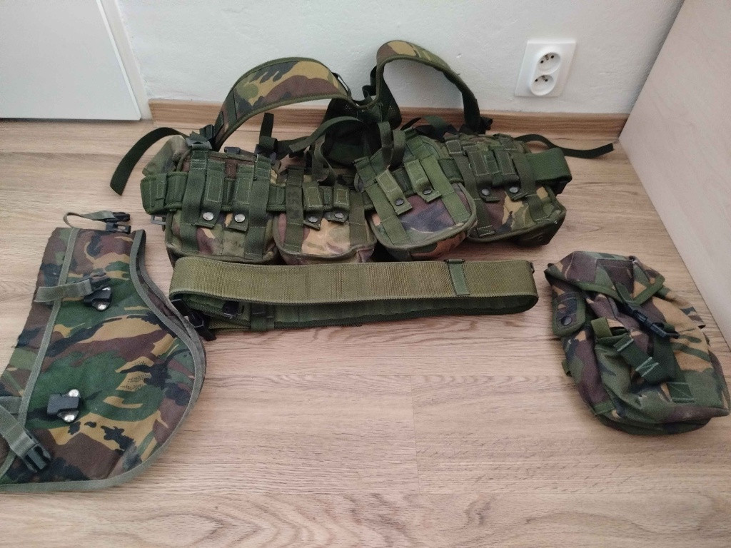 nabízím nosný systém plce 2x sumky na zásobníky 2x univerzální sumka 1x medic sumka 1x bederní pás 1x šle 2x nosné pásky jeden je velikost asi L a druhý L
