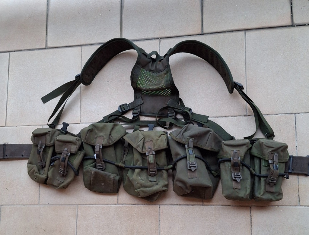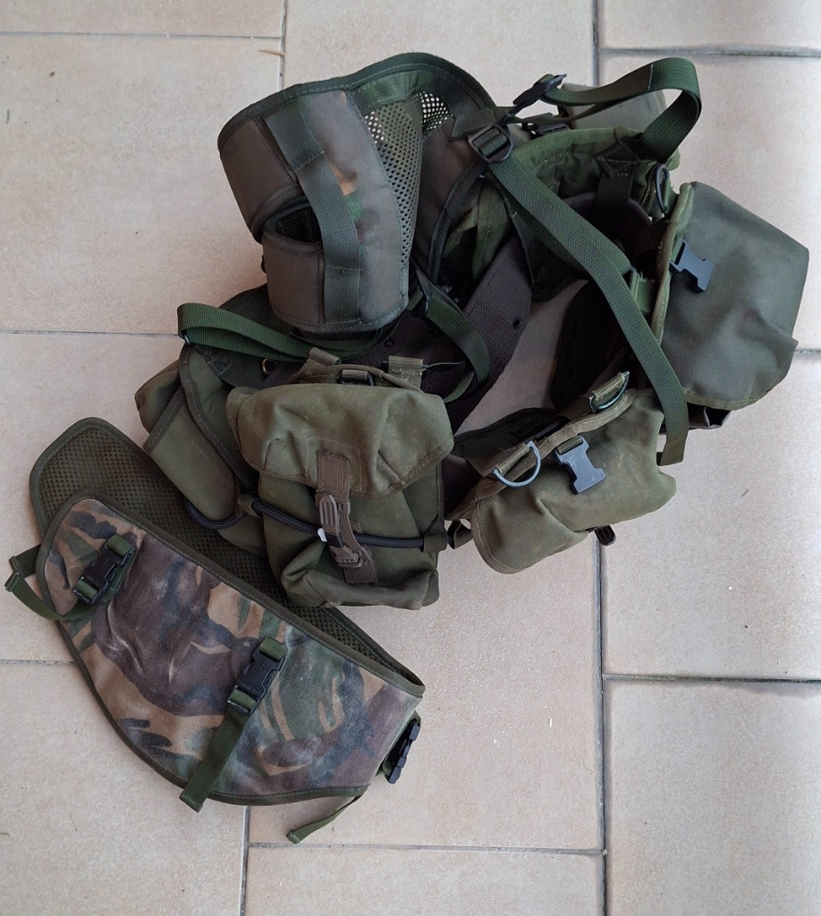 -Plce webbing britské armády od green/irr 1x M90dvojitá na zásobníky pravá 1x M90 dvojitá na zásobníky levá 3x M90 utility 1x M52 opasek 1× Nosné treky PLCE Yoke Main DPM (střiknutý ranger green krylonem) 1xBederní pás na opasek polstrovaný DPM + homemade gumičku s karabinkami pro lepší fixaci sumek Stav: zánovní, špinavý ,některé sumky jsou novější/některé starší, ale žádné markantní poškození. Cena kompletu 1550kč v ceně je i Zásilkovna (pouze při platbě předem)