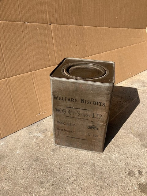 Nabízím k prodeji transportní plechovku pro suchary pravděpodobně anglického původu. Nálezový stav z půdy (objevena při opravě střechy). Rozměry 23,4x23,4x34,4cm.