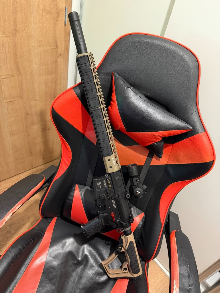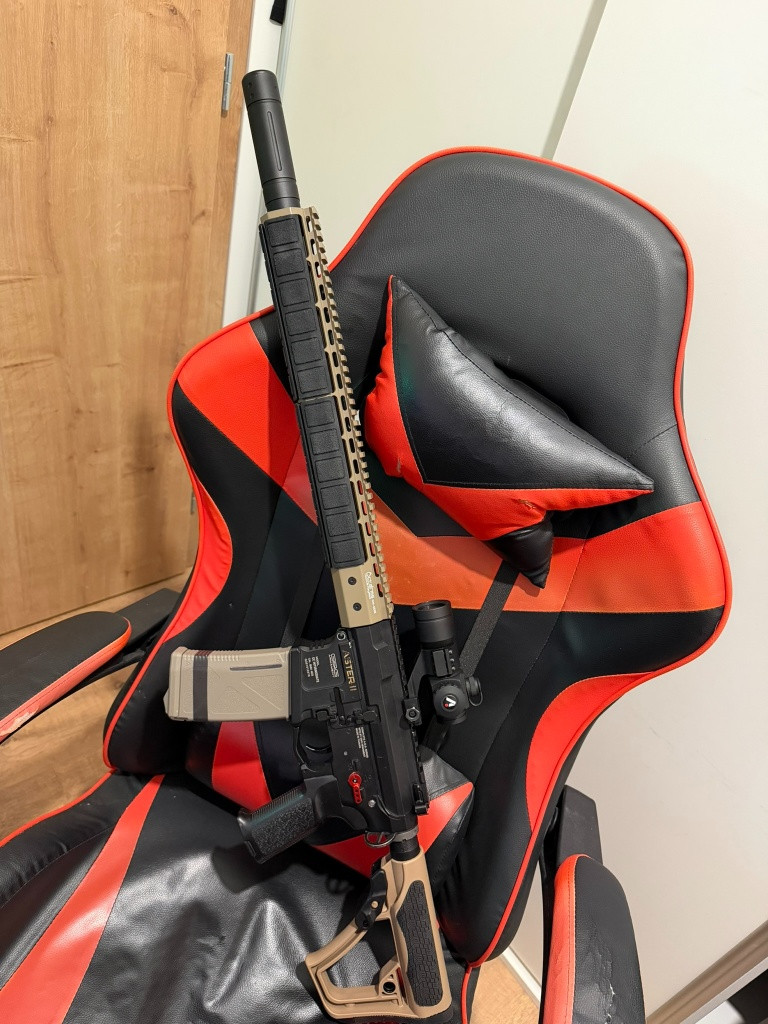 Prodám kompletně vylepšenou AEG M4. Seznam dílů: Horní/dolní část pouzdra závěru G&G ARP556, tlumič Cyma Navy Seals s pěnovou pružinou a centrovací vložkou, mechabox QSC 9mm Retro Arms CNC V2 s integrovanou Hop Up komorou Retro Arms UNI, převody SHS 18:1, tryska Epes 21,6 mm, hlava válce Epes, plný válec AirsoftPart, píst Retro Arms 14,5 zubů, hlava pístu Epes, kuličková ložiska SHS 9 mm, přepínač střelby Retro Arms Red Fire, destička přepínače střelby Retro Arms, Mosfet Perun Hybrid V2, destička zdvihátka Retro Arms POM, předpažbí Ares 15" KeyMod, gumový kryt 6x Keymod pro lepší úchop, pažba KingsArms, vnitřní hlaveň Maple Leaf 410mm 6.02, gumička/výstupek 4uad Friction Pro, pružina SP140, trn pružiny Gate CNC. Zbraň střílí 1,7+J na 0,36, ideální pro DMR/AR. Sestavení, kolimátor VectorOptics Red Dot Tube. Napište mi na WhatsApp nebo SMS, na e-maily neodpovídám. Baterie 1500 mAh 11,1 V 25 C je součástí balení.