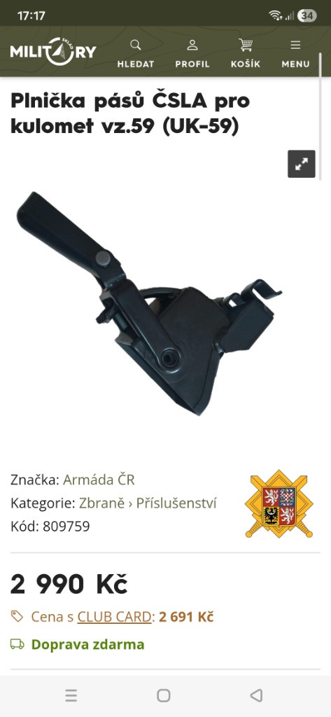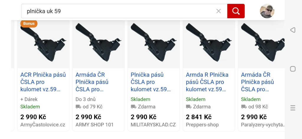 Prodám uloženky - plnička nábojových pásů pro UK 59.Cena za 1 kus je 1600kč + Zásilkovna.