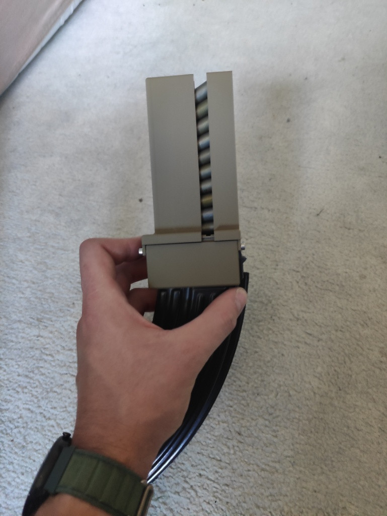 Nabízím 3D tištěnou plničku zásobníků pro SA 58. Do plničky je zasunut zásobník a následně jsou do ni nastrkány náboje (10-11 ks) ty jsou pomocí protikusu zastrčeny do zásobníku. Po naplnění požadovaného počtu je zásobník vyjmut z plničky. Dostupné barvy: Černá, zelená, písková.
