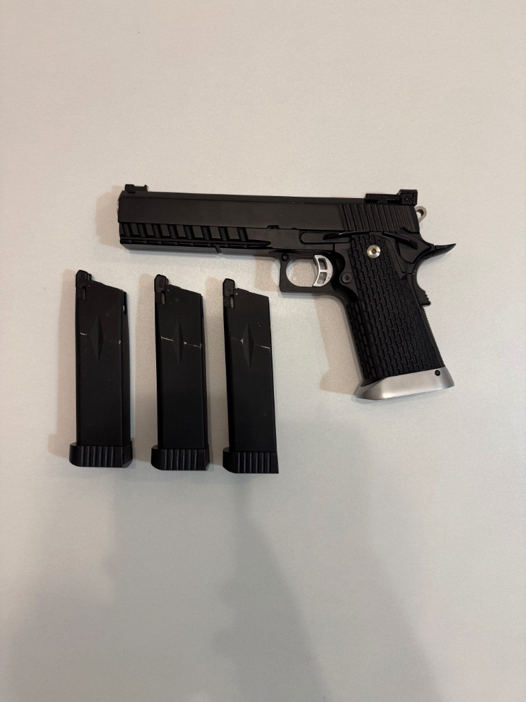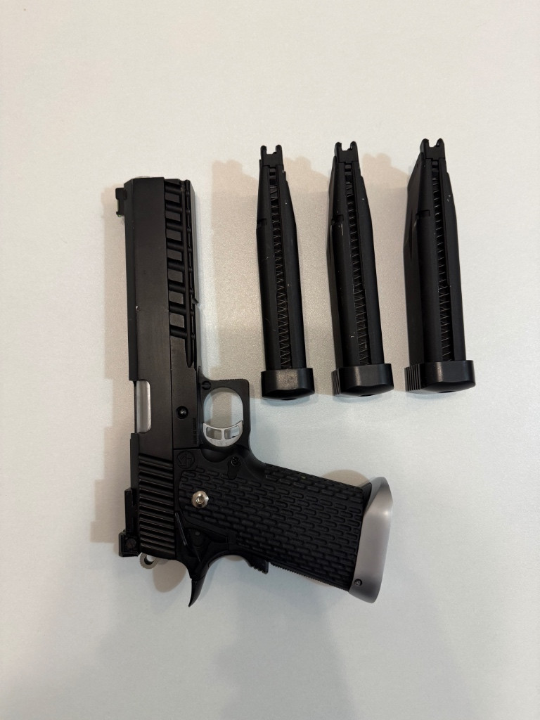 Popis:Plynová pistole s blowbackem, 3 zásobníky, zánovní stav