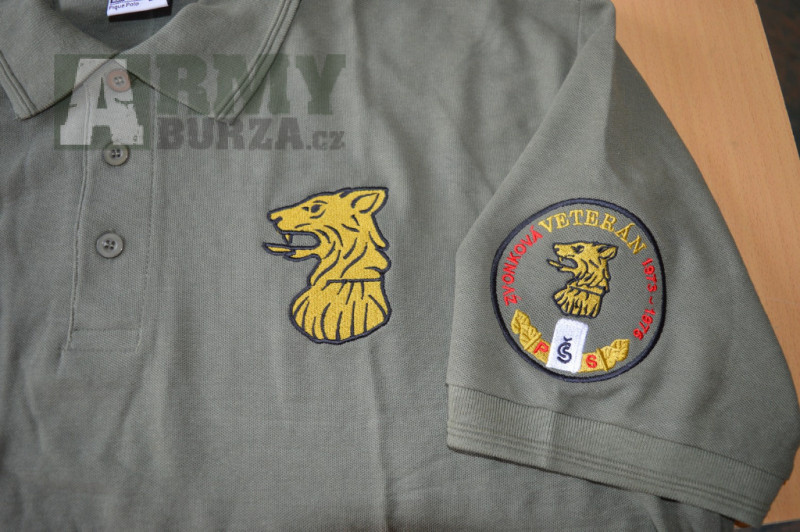 Pánská bavlněná khaki polokošile výšivkami Pohraniční stráže. Na prsou výšivka psa + na rukávu výšivka Veterán PS. Text (místo a datum) bude upraven dle vámi zadaných údajů. Možná také pouze výšivka na prsou (bez výšivky na rukávu), nebo naopak. V nabídce velikosti M - XXXXL. Cena polokošile se 2 výšivkami 600,- Kč (velikosti M- XXL) + přepravné. Velikosti XXXL a XXXXL 650,- Kč + přepravné. Barva vyfoceného trika úplně neodpovídá originálu. Skutečná barva trika viz. první obrázek. Zaslání Zásilkovnou, Balíkovnou, poštou, pouze po platbě předem na účet. Na dobírku nezasílám. popř. po dohodě na konkrétní den a čas je možné osobní převzetí v Rudné u Prahy. Zásilkovna: 90,-Kč, Balíkovna: 80,-Kč, Pošta: 100,-Kč. Platí pouze po České republice. Na Slovensko je možné zaslat pouze Zásilkovnou na výdejní místa pouze po platbě předem na náš účet. Přepravné na Slovensko 6,00 Euro. Cena jednoho kusu polokošile s výšivkami velikosti M-XXL 25,- Euro / velikosti XXXL a XXXXL 27,-Euro. V DALŠÍCH INZERÁTECH NABÍZÍME TAKÉ KHAKI MIKINY A ZIMNÍ ČEPICE SE STEJNÝMI VÝŠIVKAMI