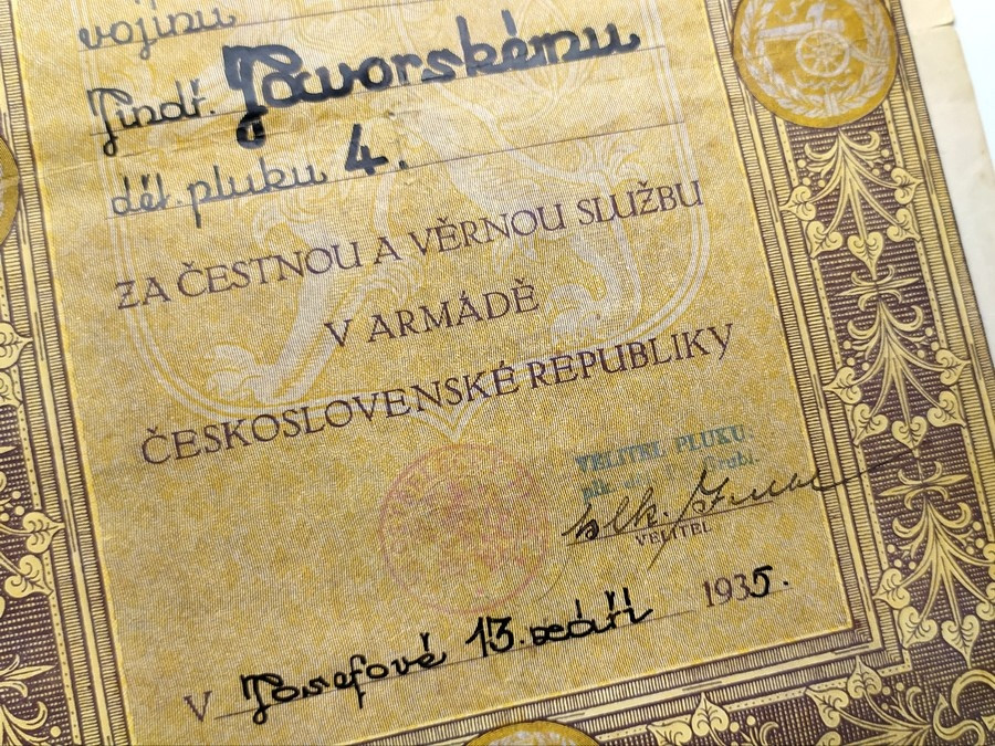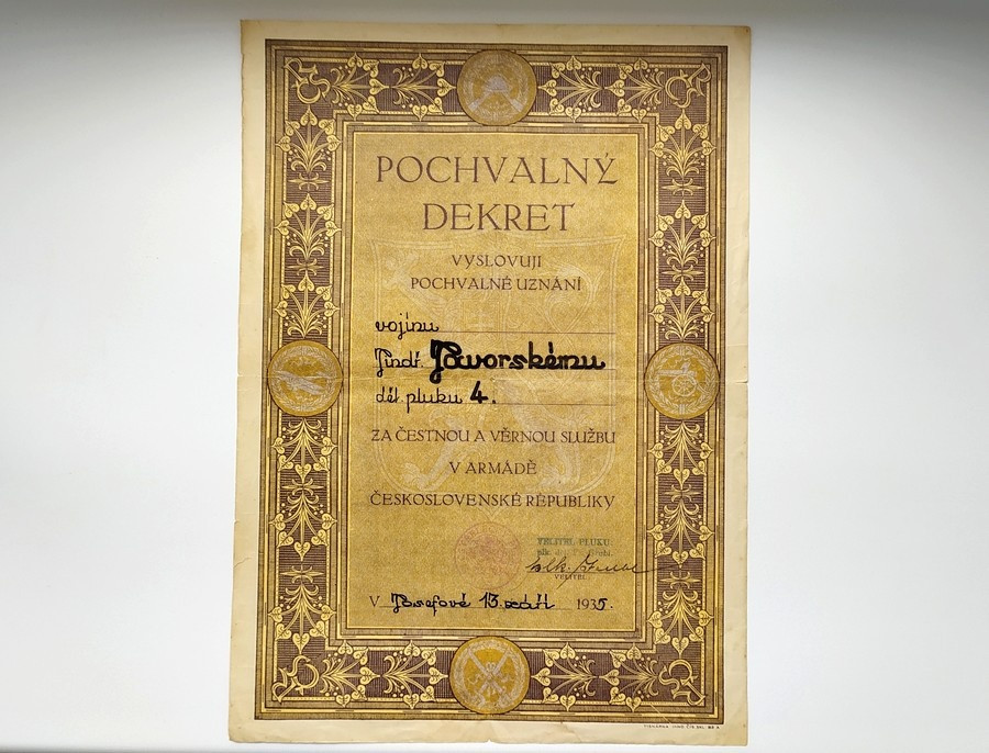 | Fotka čs. prvorepublikového vojáka v rámečku vyznamenání |