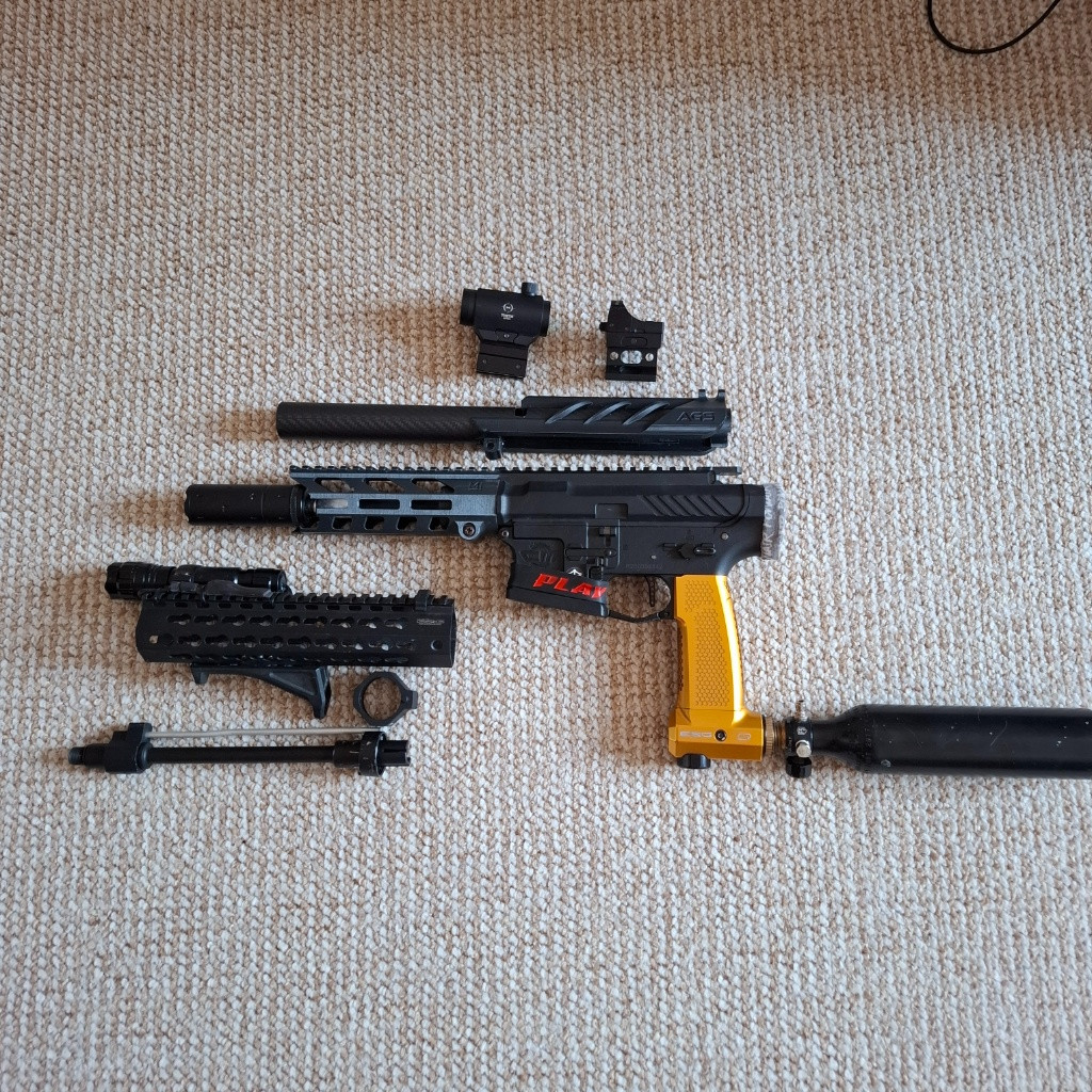 Prodám svoji záložní gun. Jedná se o tělo G&G gc16 wildhawk Grip je Monk esg se zabudovaným regulátorem Uvnitř je F2 s Perun hpa trigger boardem (nastavení citlivosti spoustě, Binarni spoustě a další ), fcu je polarstar. Hop komora ...modrá maxxka se žlutou meapleleaf a 200mm 6.03 hlaveň Vše je sestavené a předělávané na přesné zaosení trysky. Nabízím k tomu originál vnější hlaveň a předpažbí osazené svítilnou(svítí modře) a k tomu i hlaveň 6.01 od action rámy (délku myslím 310mm) Další je vnější hlaveň od specny délka 15cm +4cm prodloužení,na kterém je předpažbí z 3D tisku. Poslední upper je opět 3D tisk s Carbon trubkou do které se vleze hlaveň 200mm . Jsem schopný poskládat to tak jak kdo potřebuje. Doma najdu i origo tubus s pažbou.Jediné co nemám je klasický grip,ale i to bych popřípadě sehnal. Mám ještě 2x kolimator.po dohodě,dle volby 1 bude ke zbrani.