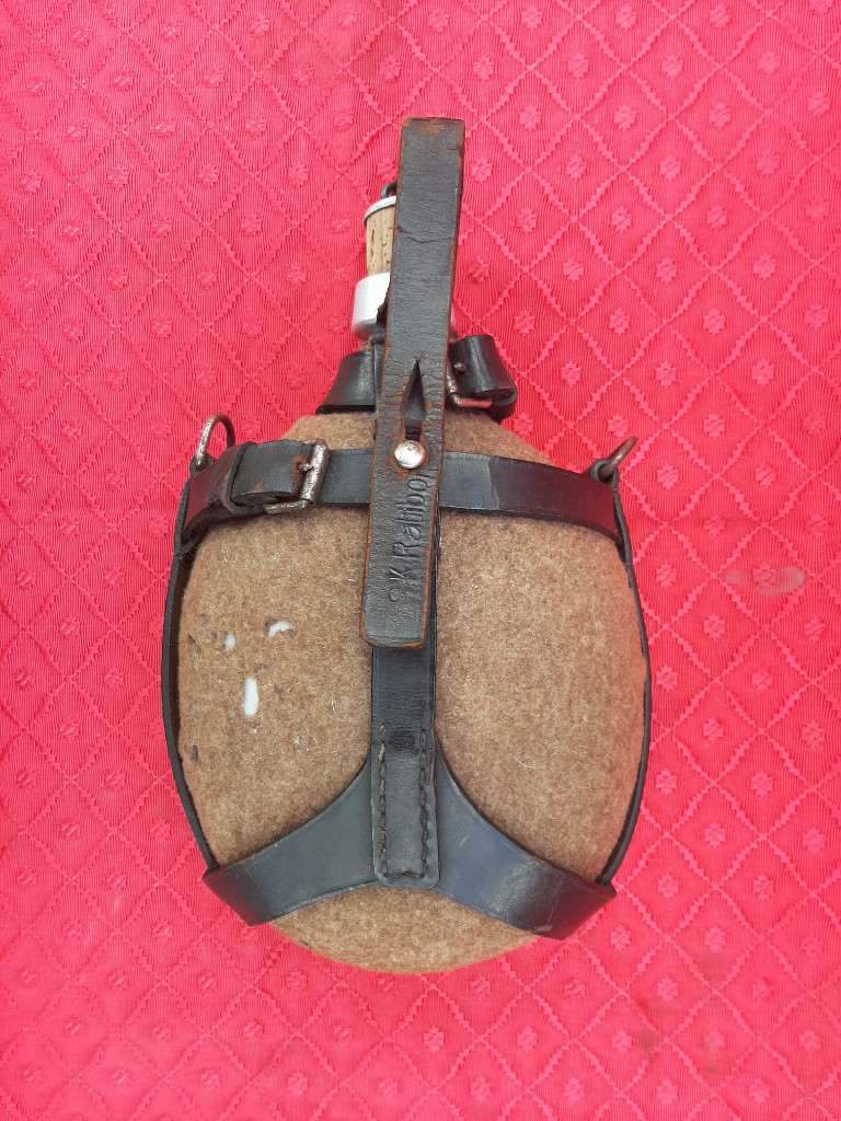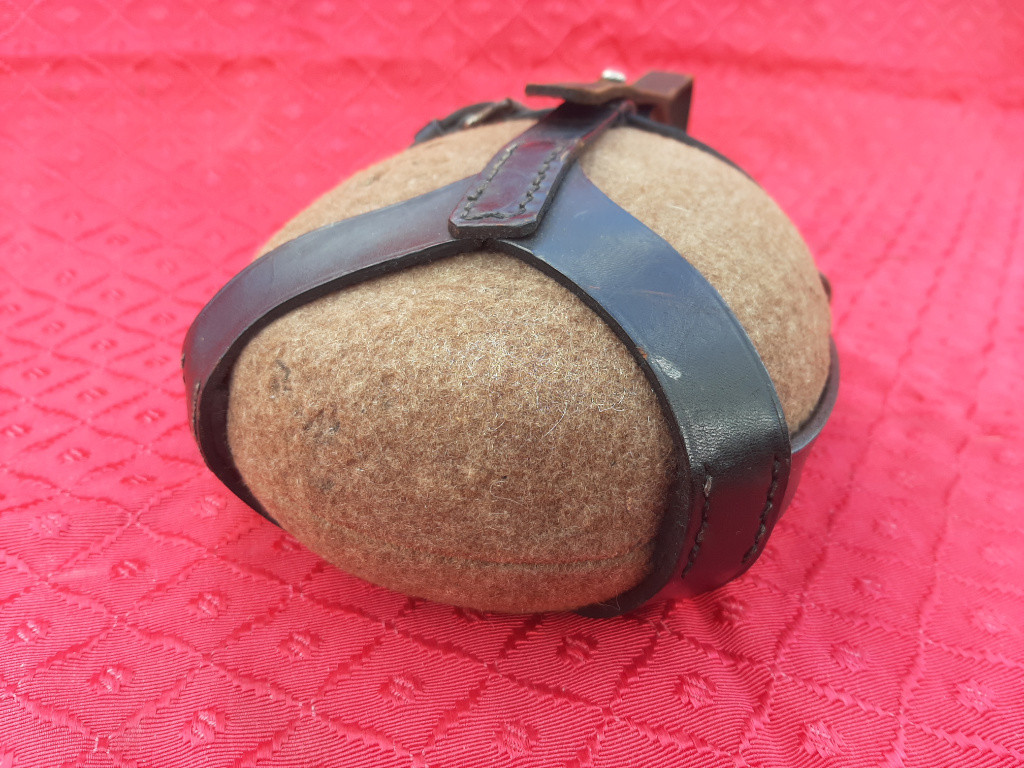 Nabízím prvoválečnou polní láhev pro zdravotníky. Kůže ohebná, filc pevny, bez pítka. Stav viz. foto. Cena je 2900kč + poštovné.