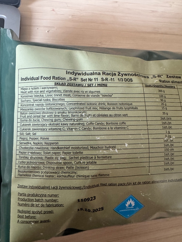 Polske mre maji stejne jako americke ohrevny pytlik,expirace 10/25, k dispozici vice kusu,jedna se o menu 11 tedy maso se zeleninou a ryzi. Cena je za jedno baleni jidla