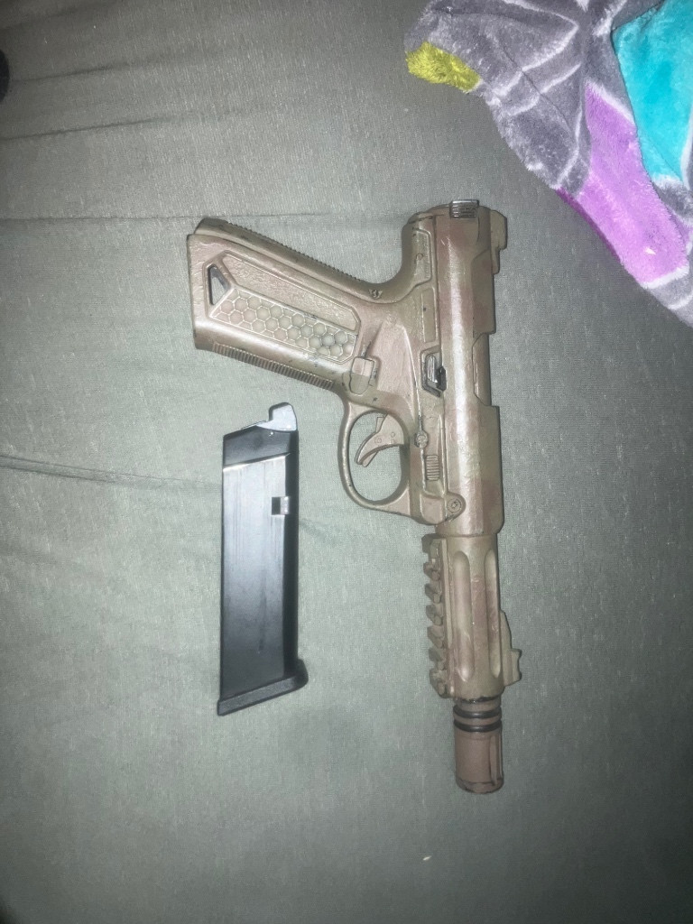 Dobrý den,rád bych prodal moji plynovou zbraň aap-01. -Zbraň je amatersky nasprejovana viz.obrazky -zbraň je použitá ale stále funkční -zbraň má poničený závit=je tam přidělaný plastovy tlumič výšlehu -prodám pouze při setkání
