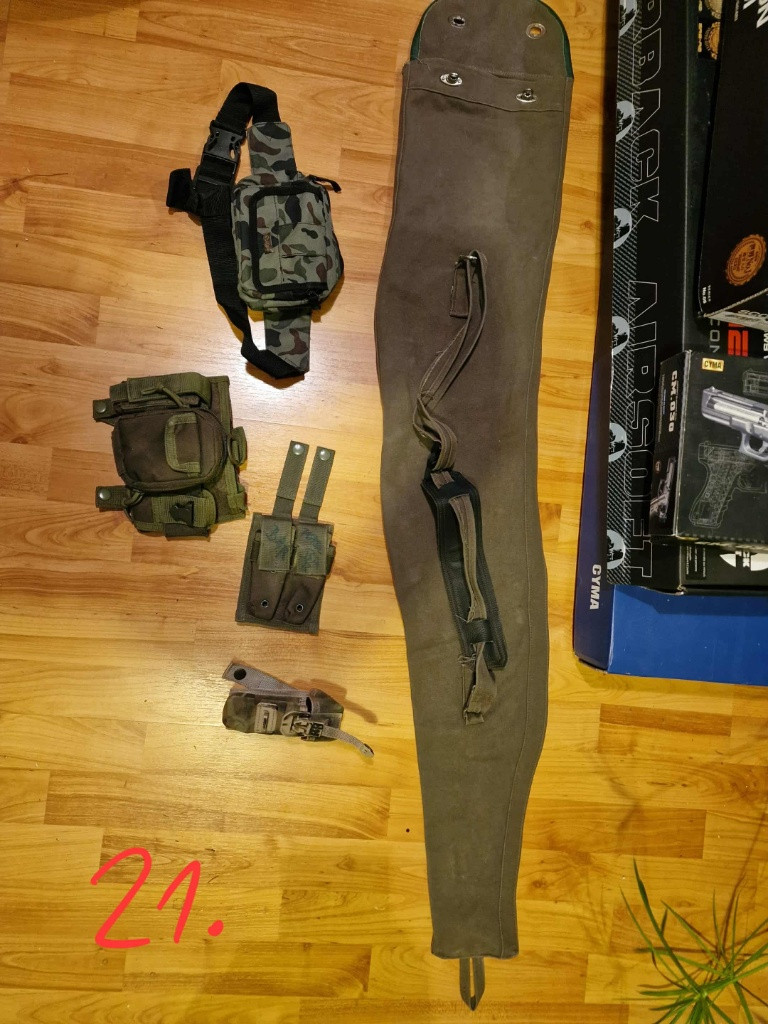 Pouzdra - Na zásobníky nebo plničky - to malinké dole pojme 2x plničku nebo 2x vsr zásobník - velké pouzdro za zbraň pojme celé VSR s optikou a nožkami(bez tlumiče) => Na zbraň - 300 Kč => ledvinka - 100 Kč => 3x kapsa (je jich tam víc,ale vypadá to tak) - 200 Kč => 2x sumka - 100 Kč => mini sumka multicam - 100 Kč + poštovné nebo osobko plzen, plzen-jih a okolí