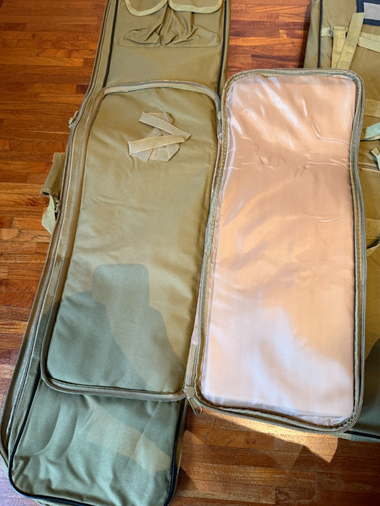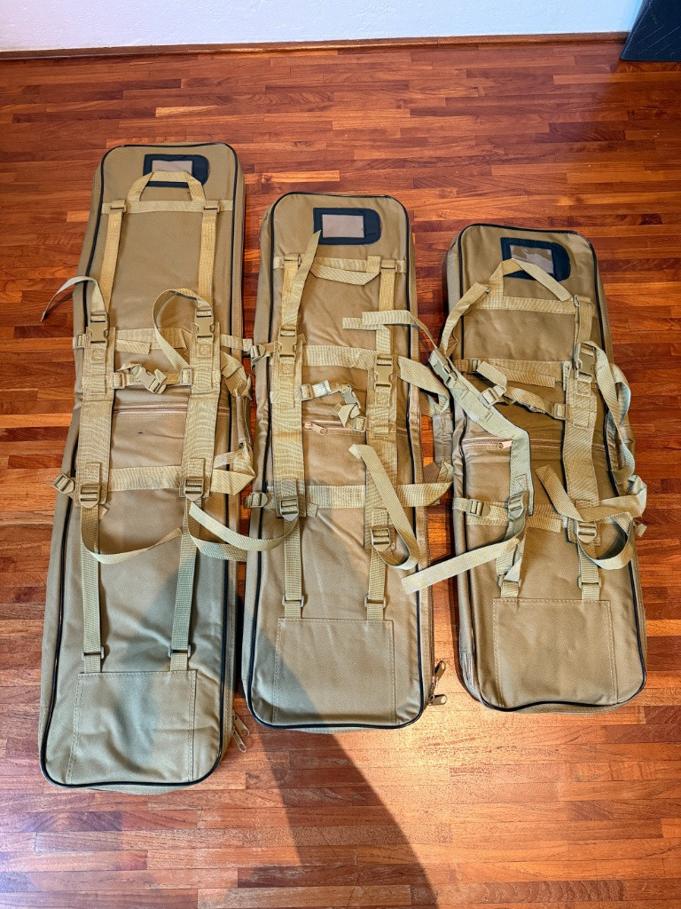 Prodám nepoužitá pouzdra na zbraně. Všechny úplně nové. Pouzdra jsou vybavené polstrováním, popruhy pro přenášení v ruce i na zádech, sumky na vybavení a uvnitř popruhy pro fixaci zbraní. CENA 400/500/600Kč dle délek