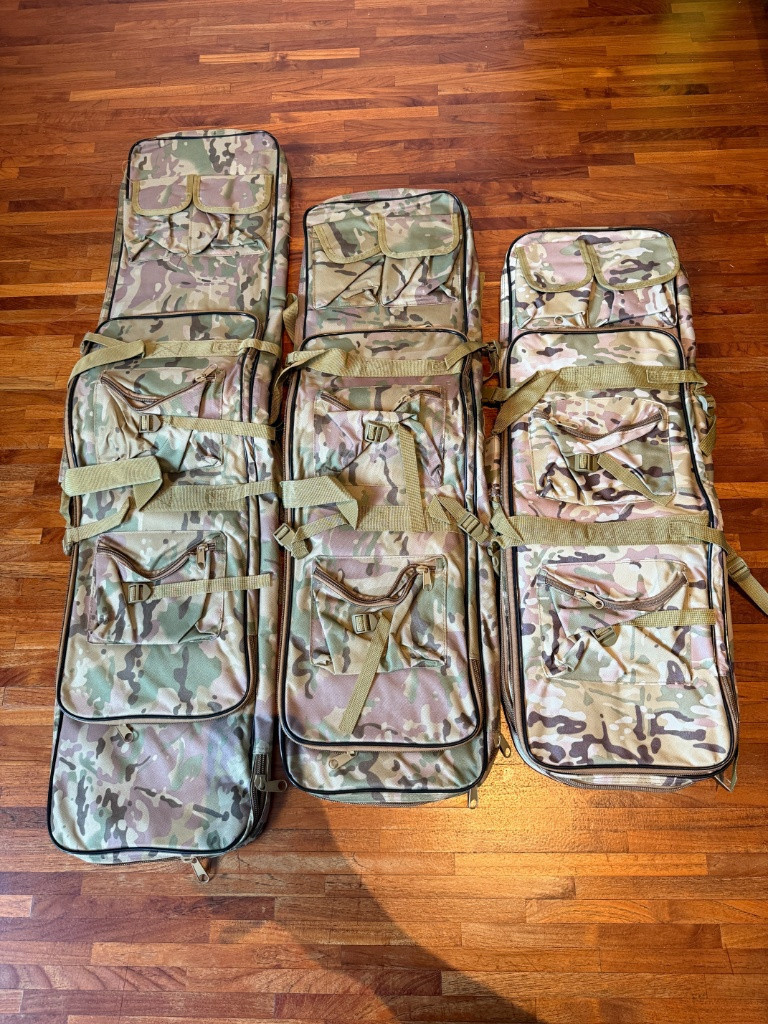 Prodám nepoužitá pouzdra na zbraně. Všechny úplně nové. Pouzdra jsou vybavené polstrováním, popruhy pro přenášení v ruce i na zádech, sumky na vybavení a uvnitř popruhy pro fixaci zbraní. CENA 400/500/600Kč dle délek.