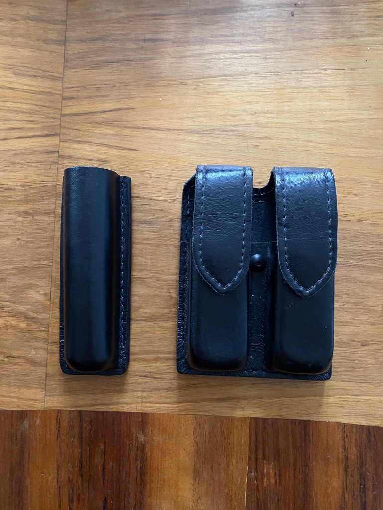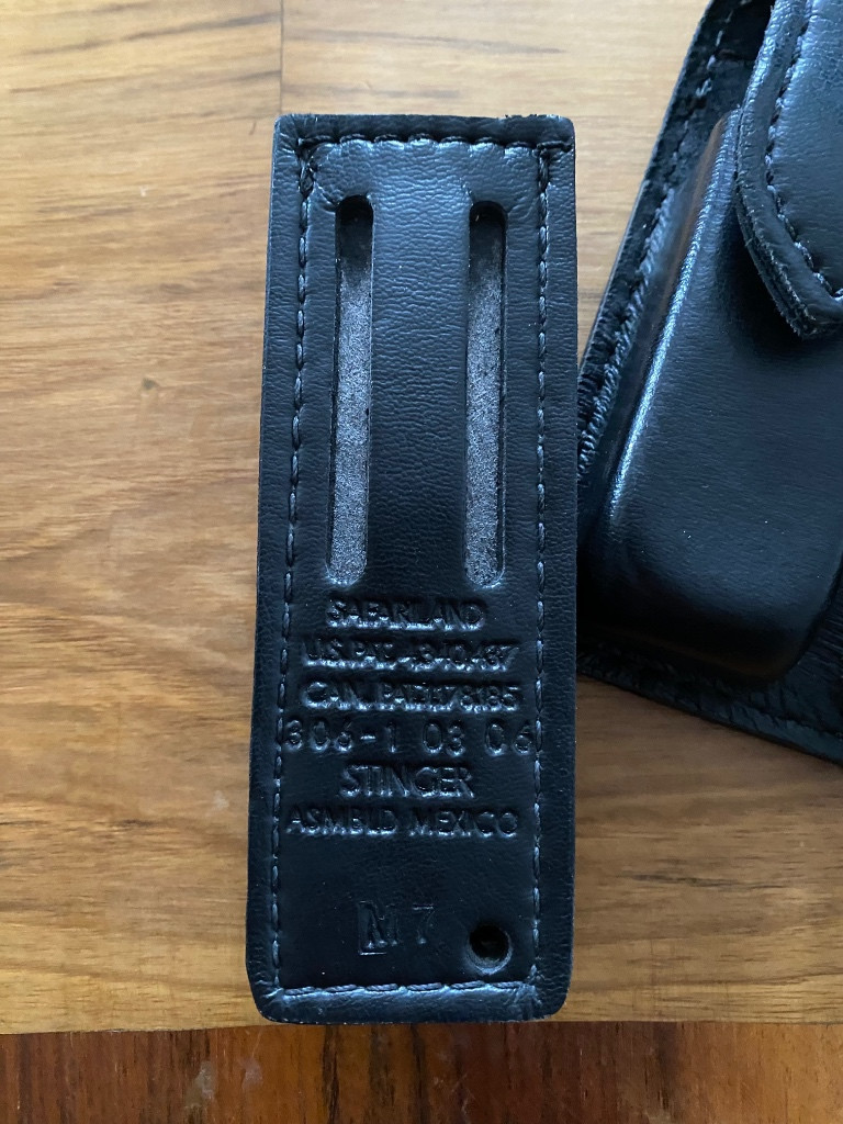 Kožená pouzdra Safariland Twin magazine pouch pro G 20/21 Vertikální i horizontální nošení Perfektní stav 500,- Stinger Na svítilnu/teleskop Perfektní stav 390,-