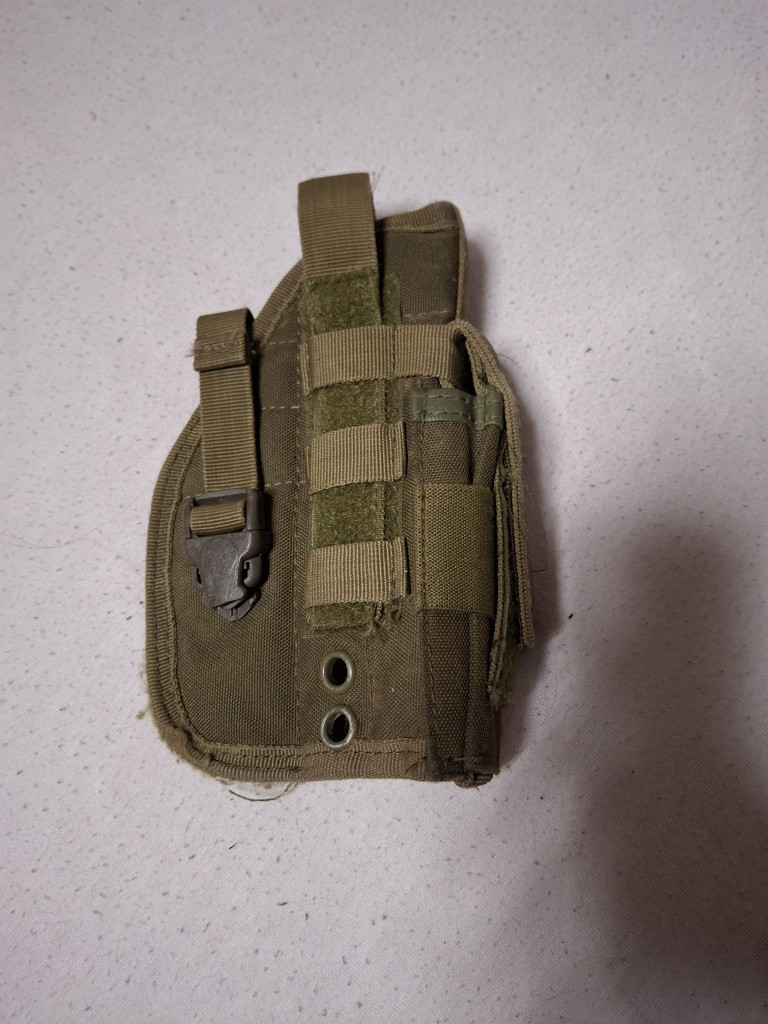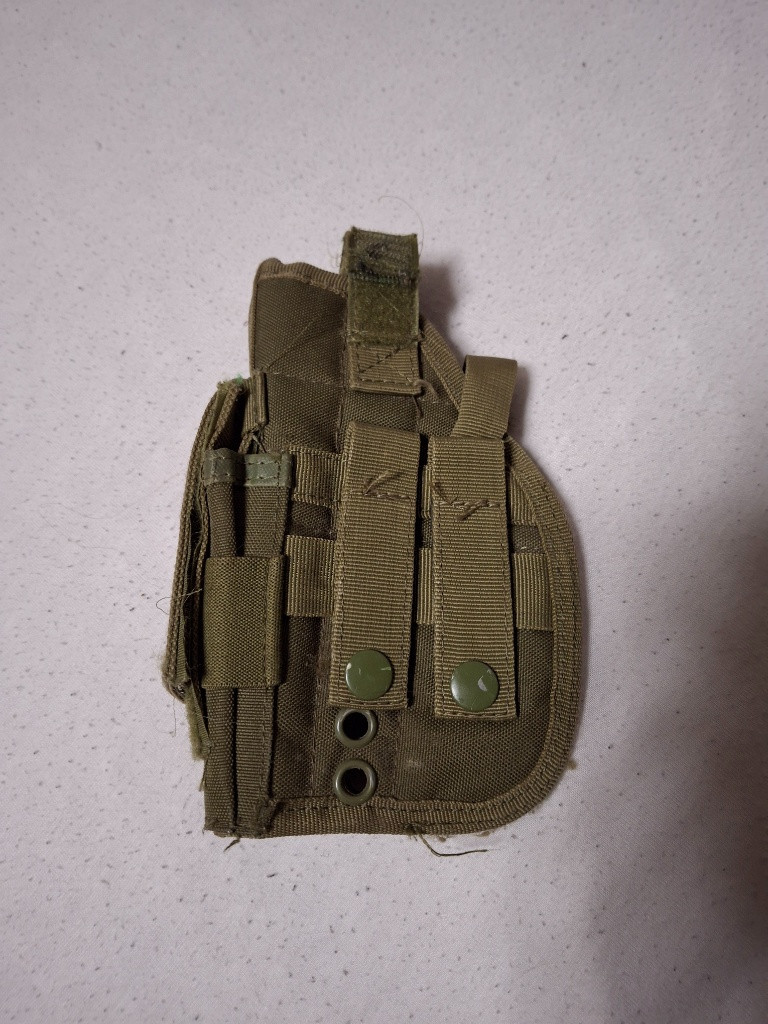 Prodám hodně použité pouzdro na pistoly. Praská plastová spona. Uchycení na molle. Zbraň pistole v pouzdře je buď na druk a nebo na suchý zip.
