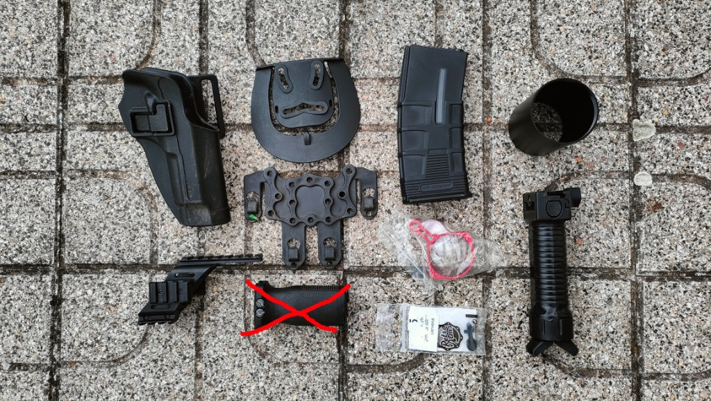 Pouzdro na Beretta M9 s různými montážemi (Na opasek, molle a padlo) - 200 Kč ICS plastový točný zásobník - 75 Kč Grip - PRODÁNO Grip s dvojnožkou - 75 Kč Kroužek pro LPVO puškohledy - 25 Kč Montáž na pistoli - 25 Kč Clona 50mm - 25 Kč