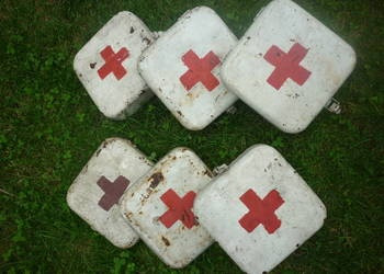 Jedná se o slušné, použité, historické lékárničky pro tanky a další vojenská vozidla. Vydrží jakékoli podmínky. Rukojeti jsou funkční. Vnější povrch vykazuje četné promáčkliny, drobnou korozi a několik vrstev bílé barvy. Cena je za všechny.