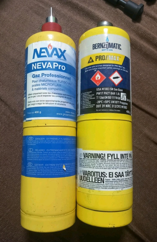 Dvě propanové lahve s propanem 450,-