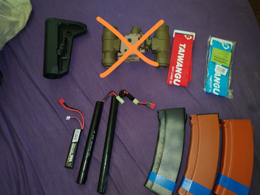 Vesta/chest rigi- 1 je za 30 plus dohoda. 2 za 10€ 3 oliva za 10€ Predpažbie pre kalacha 3d print 15€ Magwel je kollibri za 20€ Rp1 pre kalacha za 10€ Mro hnedé plus 2 montáže 40€ Tubusovi kolim 15€ Mlok grip za 5€ Pazba čierna 15€ Zasobniky do kalacha 5€ kus. Baterky lipo za 10€ Ostatne za 5€ kus. Nabíjačky 1 za 10€ 2 za 10 3 je titan nová za 20€ Chrono 40€ (nové stojí 70-75) Masky na tvár 5 € kus Na cene sa dohodnut.
