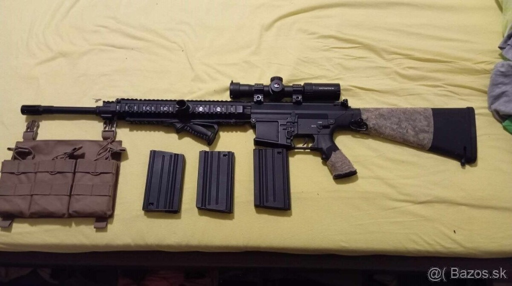 Dobrý deň, ponúkam na predaj toto kamarátove kvalitné DMR (https://www.patrolbase.co.uk/east-crane-ec-901- sass-sr-25-dmr-aeg-semi-automatic-only), v upgrade -Kestrel v2 ETU basic -Maple leaf Mr hop up 75 degrees -Maple leaf aeg hop up tensioner omega 80 degrees -Lambda 01 precision barrel 6.01 509mm -Prowin m4 rotary hop-up -nový scope v hodnote 70 Eur Zbraň má 500 fps, bola použitá na jednej hre (Čachtice). Dokopy tri zásobníky a sumka vo farbe TAN Písať na mail, číslo vymyslené. Ideálne osobný odber Ružomberok, Liptovský Mikuláš a okolie