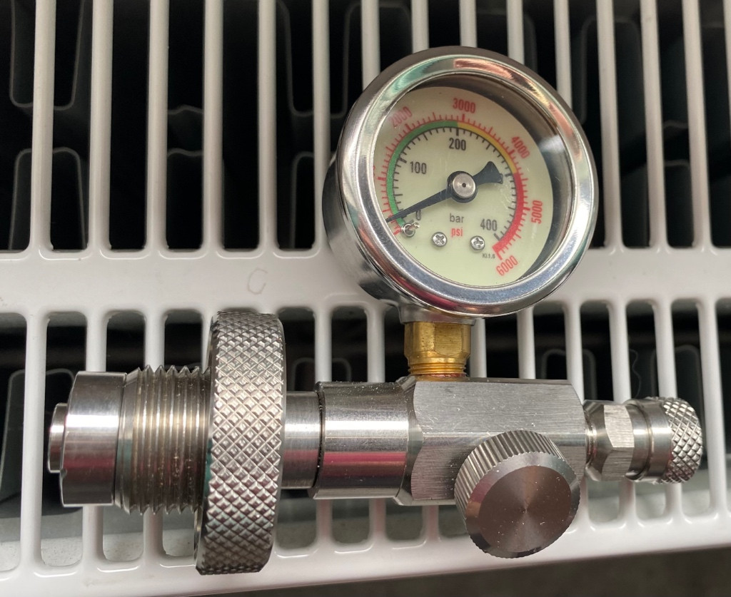 Ventil pro plnění HPA lahví. Minimálně používaný, plně funkční.