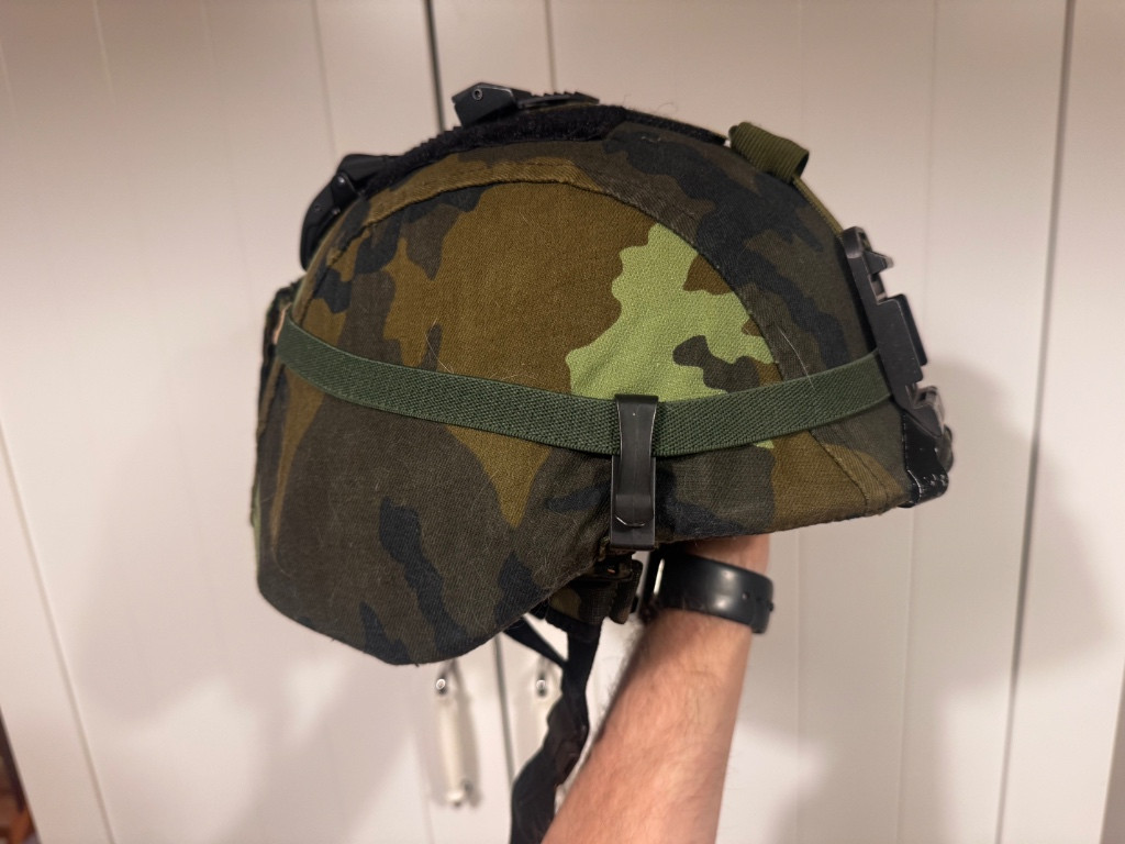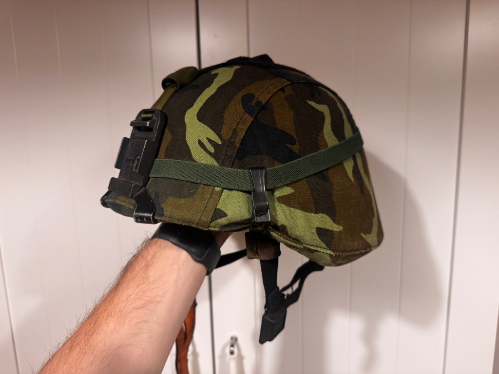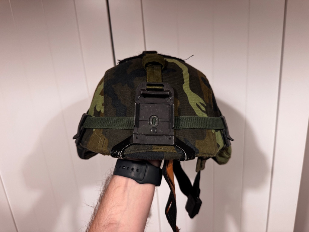 Prodám balistickou helmu, materiál aramid. K helmě originální potah VZ95, cat eyes a originální USGI NVG shroud s ratchet strap ( destička na noční vidění a popruhem a napínací ráčnou, polštářky jsou vyprané, čisté. Helma pod potahem čistá, neponičená, nepoškrábaná, zelená. Velikost M/L. Možná výměna za sumky v MC, nůž, svítilnu na zbraň nebo něco dle nabídky. Více info viz štítek // tagy armáda, ačr, balistická helma, výstroj, vz95, militaria, maskování, army, military, aramid, helma, přilba, kevlar