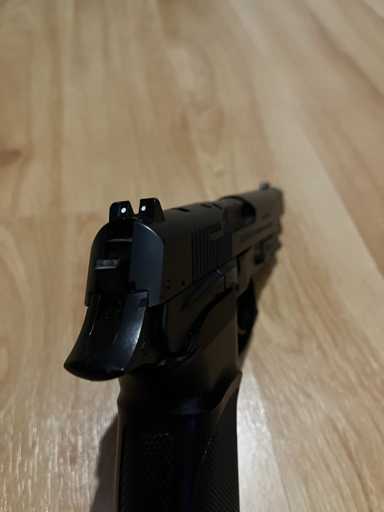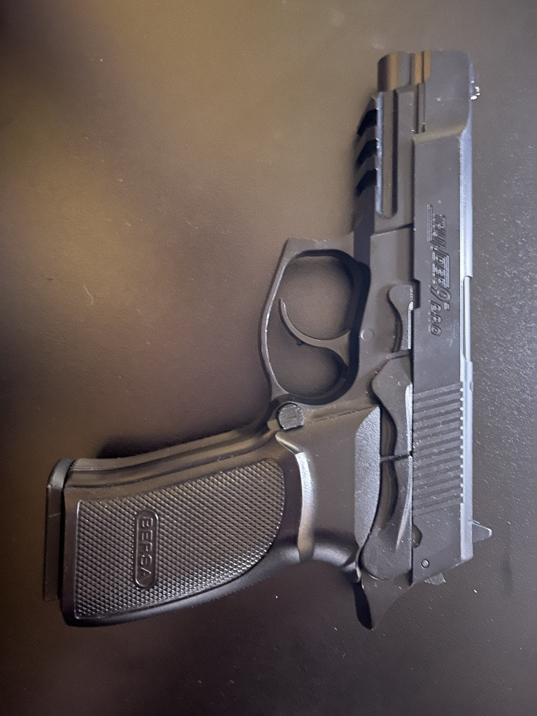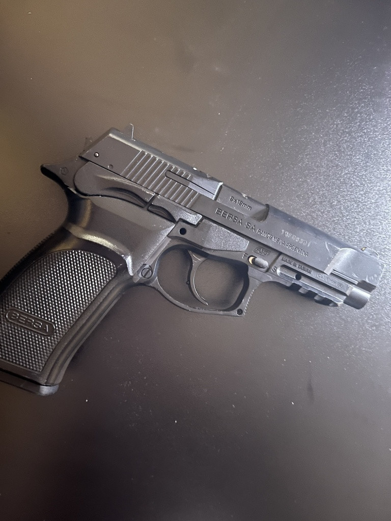 Prodám jednoruční airsoftovou zbraň Bersa Thunder 9 Pro, zbraň je poháněna plynovými bombičkami Co2. Zbraň je v dobrém stavu, plně funkční. Jediný problém je, že zásobník nepodává kuličky jinak je plně funkční. Prodávám jí z důvodu, že už se airsoftu nevěnuji ale věřím, že někomu ještě dlouho a dobře poslouží. V případě koupě, přidám ke zbrani sáček s plnými a nepoužitými Co2 bombičky. Parametry: Režim střelby: Pouze jednotlivě Typ hnacího média: CO2 bombička Úsťová rychlost: 135 m/s Teoretický dostřel :60,96 m Vhodná váha kuliček :0,25g Délka zbraně : 192 mm Hmotnost : 520 g Tělo :Kovová slitina Kapacita zásobníku :15 Materiál zásobníku :Kov Typ zásobníku :Tlačný pružinový