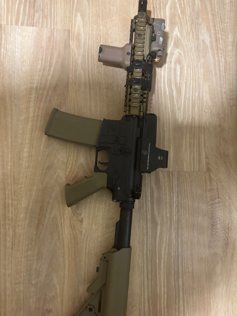 Prodám airsoftovou zbraň Daniel defenc Mk18 i se svítilnou,peq boxem,holografickým zaměřovačem, zásobníkama a rukojetí.