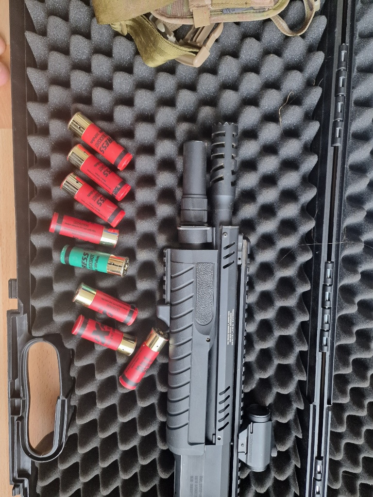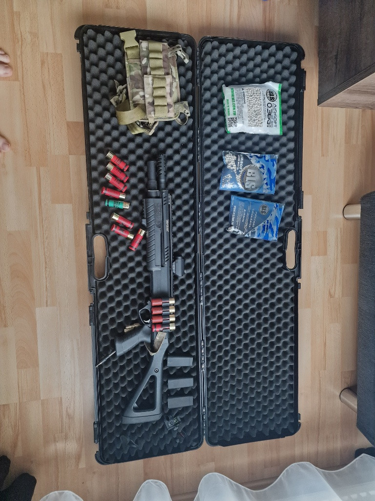 Prodam brokovnici stf 12 predelanou na hpa. S shotgun shell na kulicky kufrem a 3 zasobniky na plyn. Mozne predelat zpet na green gas. Zbran kompletne utesnena a upravena. Prehozene dily z tokio marui. Zbran profi upravena v action shopu na zakazku. S 0.36 dostrel 60m a vykon 1.2 na kazde kuli. Moznost 3 nebo 6 ran. Zbran v perfektnim stavu a kompletne funkcni. Duvod prodeje malo s ni hraji mam vice zbrani nez potrebuji. Cena dohodou. Nabidnete.