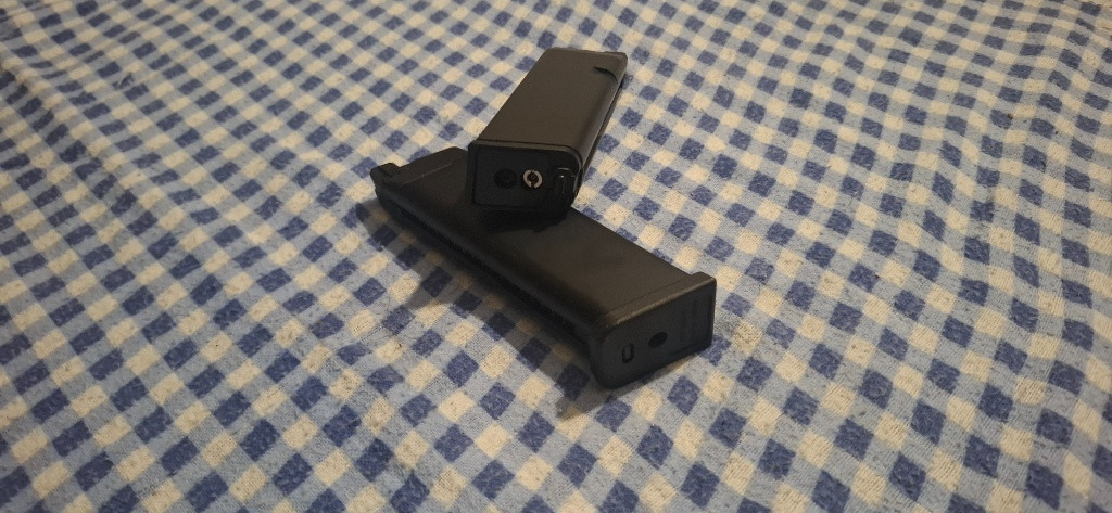 Prodám dva zásobníky pro G17 / G18C 24BB Green Gas WE Black Jednomu zásobníku chybí spodní krytka