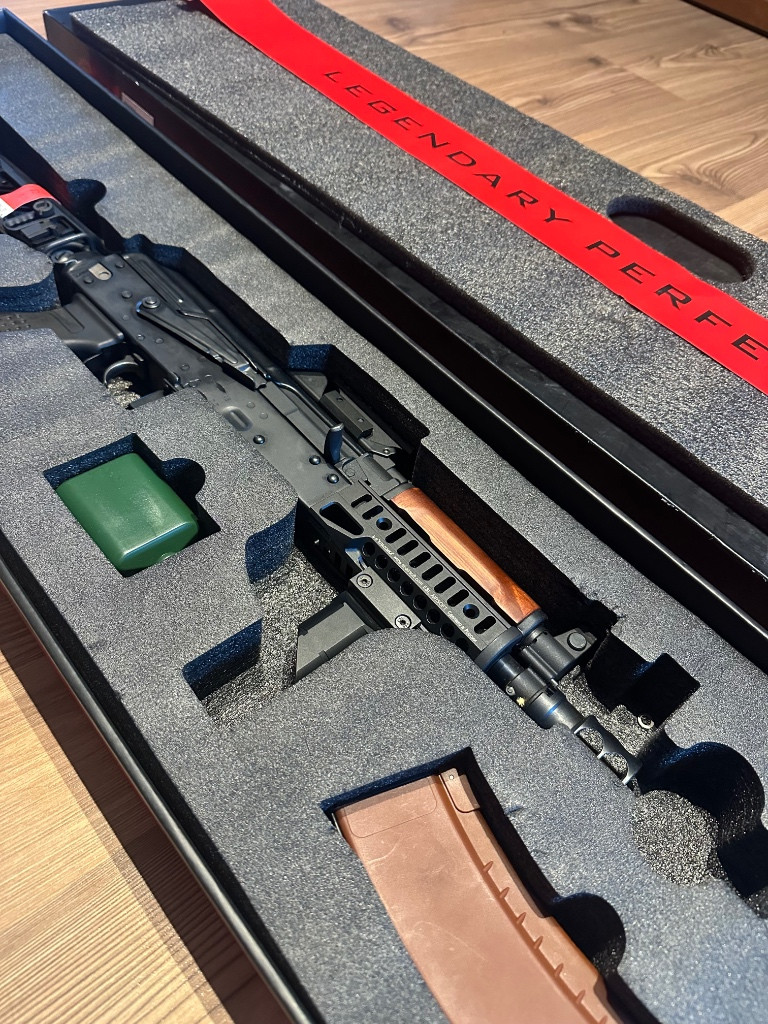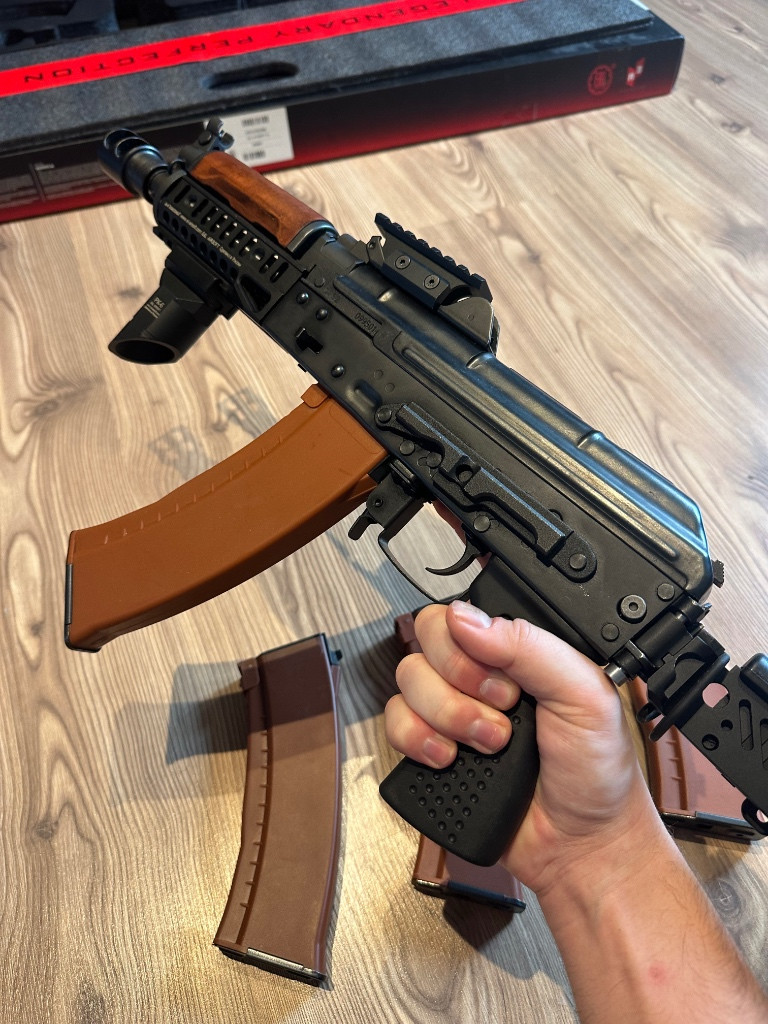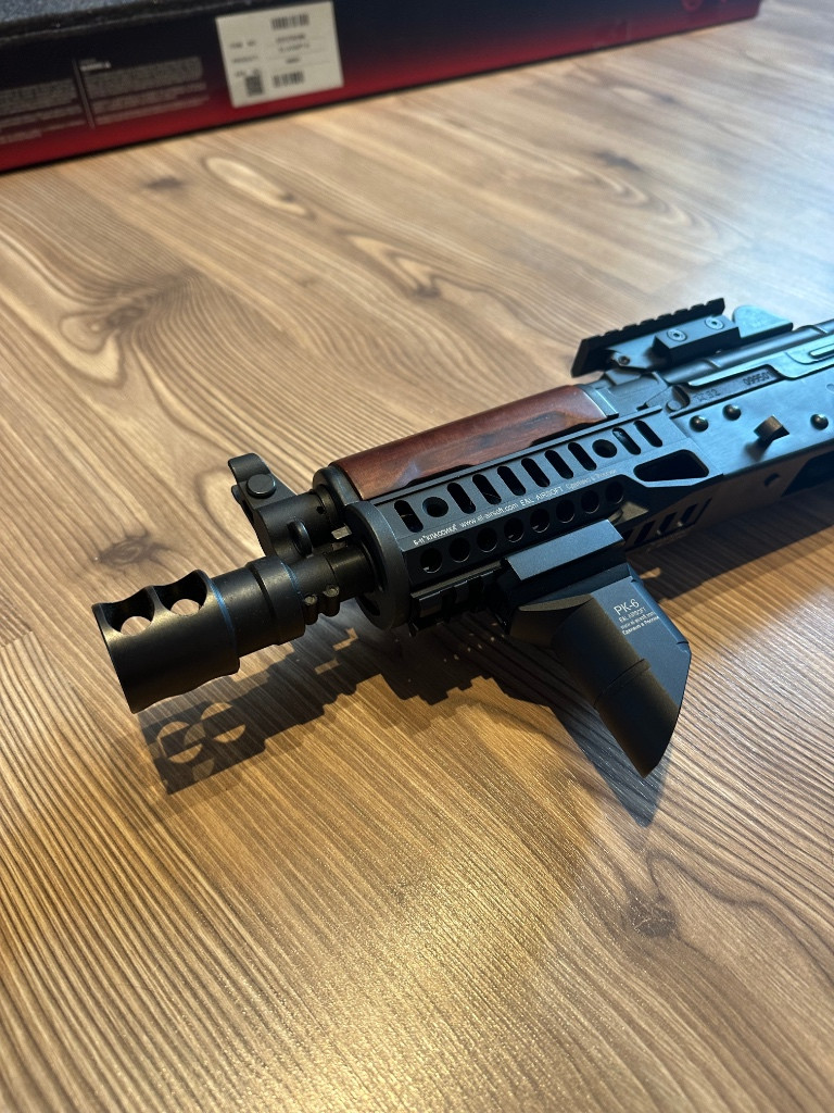Prodám E&L ELS-74UN Z-SPEC Mod.1 platinum series Prodám airsoftovou zbraň E&L ELS-74UN Z-SPEC Mod.1 platinum series. Zbraň hraná cca 3×, ve velmi dobrém stavu. Jedná se dřevo-ocelovou konstrukci. Uvnitř je mechabox V3 s rychlou výměnou pružiny, jednotka GATE ASTER SE V3, ocelové převody 13:1 a Slim motor. Replika je osazena Zenitco setem (B-11, RK-6, RK-3, PT-1, DTK-2W). Čep kloubu pažby byl nahrazen novým, přesně lícujícím kusem. V balení: Replika s zenitco setem 4× plně funkční mid-cap zásobník Cena: 11 500Kč Možnost osobního předání (Ostrava), nebo zaslání po domluvě. Dotazy do zpráv prosím.