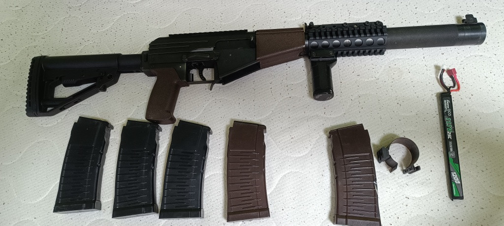 Prodám svůj As val od lct je dobře poskládaný od kluků z Airhardu kromě motoru je vylepšený, ( a hop komory ta musí být origo).je v tom procesorovka T238. Je na tom tubus s ak12 pažbou do které je navedená kabeláž k baterii. Všechny díly jsou na poslední fotce Je na tom tisknutý dustcover s ris lištou. Přidám 40mm RIS lištu okolo hlavně, 4 tlačné a jeden točný zásobník. Jednu baterii Vyměním za F2