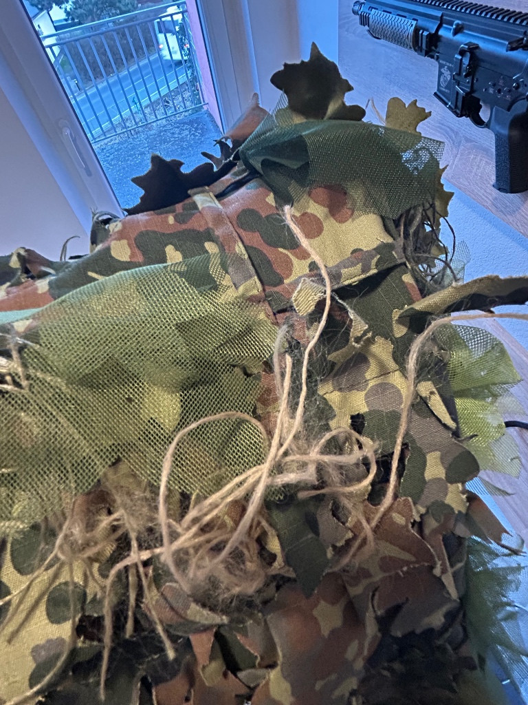 Zdravím,prodám maskovací převleční v barvě flecktarn,značka převlečníku je Invader Gear,je kvalitní a pevný,velikost je univerzalni,da se stahnout pomocí pásek,v kapuci je na okrajích drát pro nastavení tvaru kapuce,boky v kapuci jsou ze síťoviny,takže jde krásně slyšet a větrá,je na něm dodělána imitace trávy a 3D listy 3 různých barev,použit byl jen na jedné akci.Pouze prodej,preferoval bych osobní předání Opava a okolí.Pořizovací cena 4,5k
