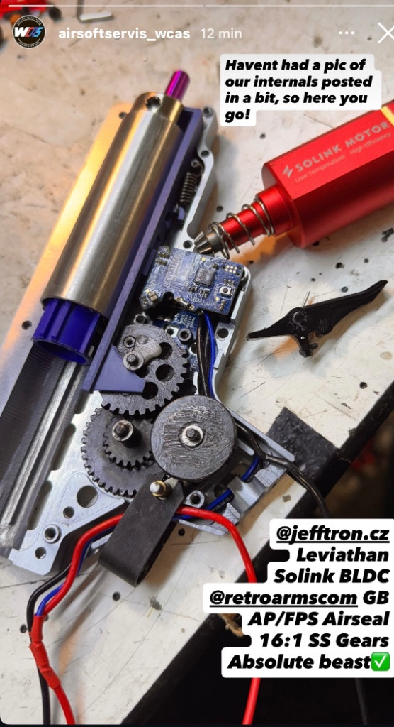 Výbava: - 10× zásobník (120 BB) - Svítilna - Retro Arms CNC mechabox - Jefftron Leviathan V2 (update, zkrácený chod spouště) - Motor Solink 35k - 5200 mAh 11.1 V baterie Výkon: - 35 RPS konstantně - M130 = 1.7 J, M120 = 1.5 J , momentálně sníženo na 1.3J CQB - Perfektní zvuk, kadence a spolehlivost SSR9 build : - Precizní osazení na desetiny mm, upravený přepínač pro hladký chod - CNC kluzná ložiska, short-stroke kola - Upravené časování trysky (výpust při 10. zubu) → vysoká kadence od začátku do konce - Korekce AOE, nový vzduchový systém (ASpart hlava válce, nová hlava pístu + píst) - Rozšířený nos pro minimální vůli trysky (prevence Midcap syndromu) - Tryska s novým O-kroužkem → minimální tření, správné těsnění - Upravený pistol grip pro správný úhel, opravená spodní krytka - Hop-up: upravené ramínko, leštěná hlaveň, 4uad guma a přítlak Garance: - 2 roky záruka + 1 rok servisu WCAS. upgrade proběhl 30.9.2025 WCAS_Airsoft - Rozumné dohodě se nebráním