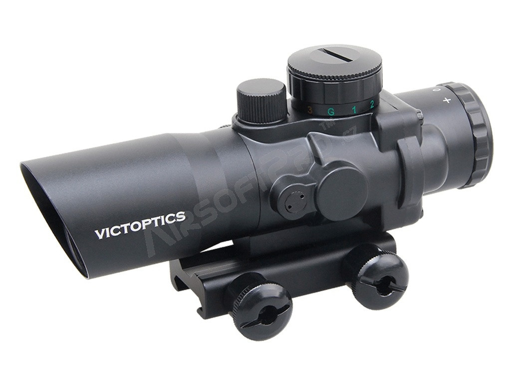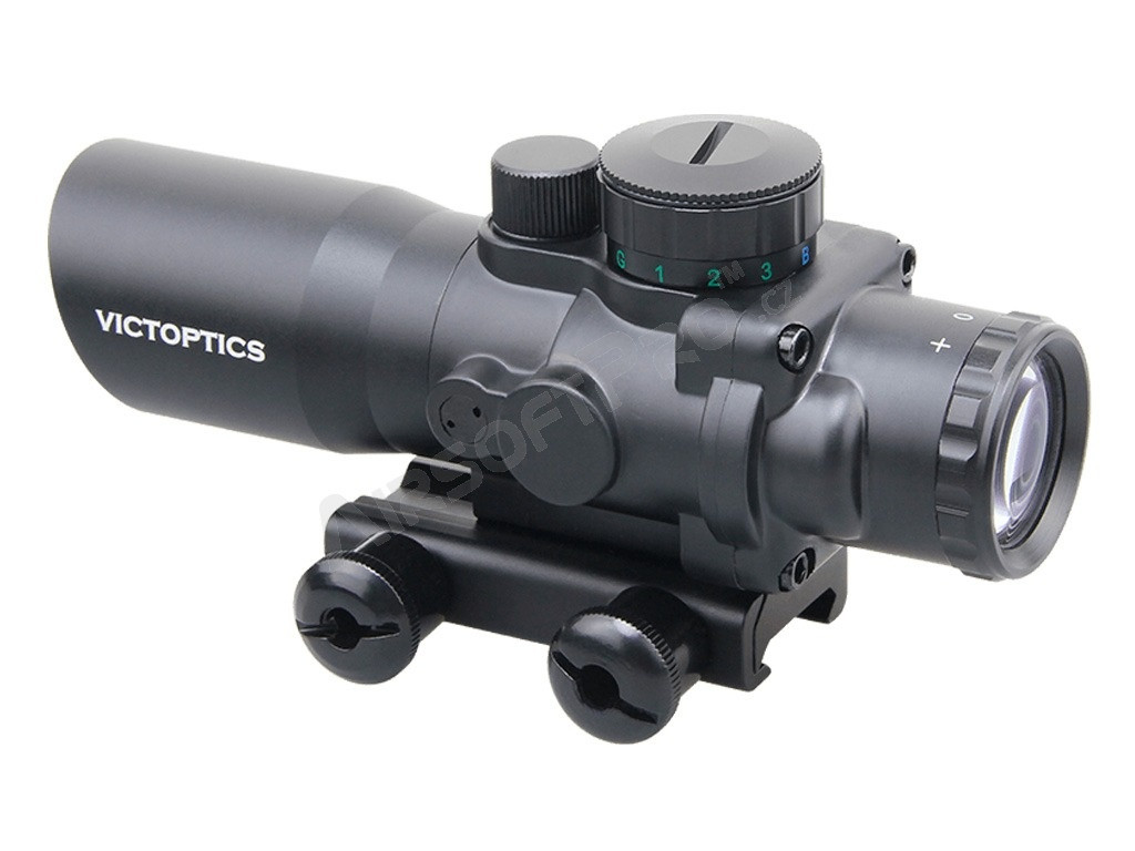 Prodám optiku - nová, nepoužitá jde o Puškohled VictOptics 4x32 Prism Info na: https://airsoftpro.cz/cz/doplnky-ke-zbranim- popruhy/kolimatory-puskohledy/puskohledy/puskohledy- 32mm/puskohled-victoptics-4x32-prism-detail PARAMETRY Přiblížení: 4x Průměr průhledového okénka: 32 mm Délka montáže: 66 mm Délka: 148 mm Hmotnost (netto): 380 g Zorné pole: 36,6 stop na 100 yardů Povrchová úprava optiky: vícevrstvá Záměrný kříž: Chevron, červený, zelený, modrý, 3 úrovně nastavení intenzity Nastavení korekce po: 1/2 MOA Výšková korekce: 70 MOA Stranová korekce: 70 MOA Dioptická kompenzace: -2 až +2 Typ baterie: 1 ks CR2032 Odolnost proti nárazu a mlze (čištěné dusíkem) Odolné do ráže: .223