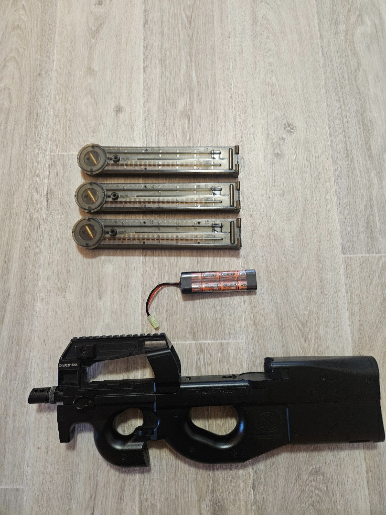 Prodám moji aeg p90 + 3 tlačné zásobníky, Nimh baterii a sumku na 2 zásobníky. Zbraň byla párkrát na akci ale funguje jak má.