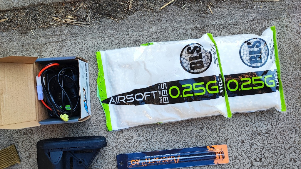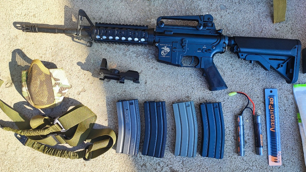 Dobrý den prodám set M4 s příslušenstvím vše je málo hraně párkrát s tím hrala moje přítelkyně, M4 s 120M pruzinou + 100m pružina k tomu, M4 naměřila 125m/s,vysílačka plně funkční Baofeng. Dále maska na obličej, baterie do M4 +nabíječka, zásobníky 1 točny na 200kulicek a 3 tlačný na 85k a 140k. bls kuličky 0.25g 5tis kuliček, popruh na zbran, prodej pouze jako celek vše co je na fotkách děkuji. Možnost předání a vyzkoušení na místě Přelouč, Kolín, Pardubice. Vše kupováno buď v anareus nebo arsoftpro.