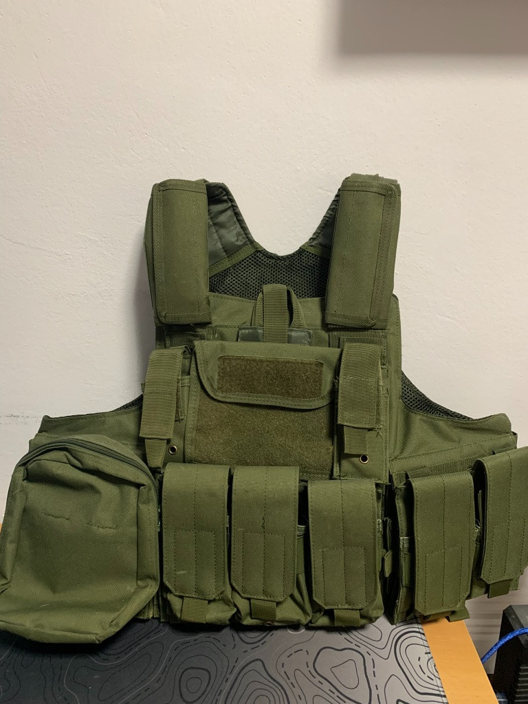 Prodám vestu barva zelená, 3 na akci skoro nová vypadá jak nenošená upravitelná velikost 5x sumky na zásobníky do M4/M16/G36 1x kapsa na vysílačku 1x admin pouch 1x kapsa se zipem na dokumenty či mapy a vnější povrch na nášivky se suchým zipem. 2x sumka na pistolové zásobníky 1x sumka-lékárnička s vnitřní všitou gumou na obvazy, nebo léky