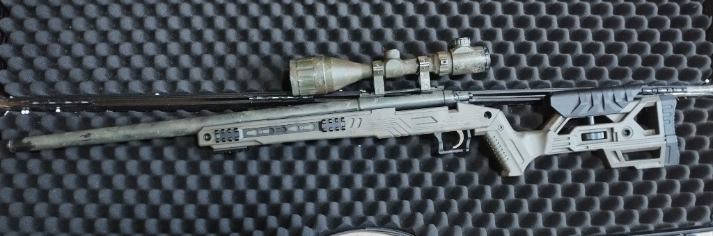 Prodám mojí krásku, už ji mám asi 4 roky, od tý doby už je v základu jen hlaveň. S 0.45g to dává 2.2J. Nový tělo. Pružina M150. Gen 2 spoušťák. Přesnej dostřel cca 80m.