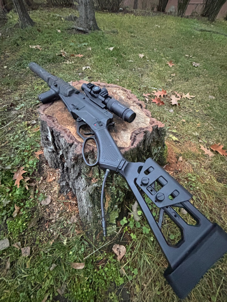 Ahoj po uvazeni a prezbrojovani tymu. Prodam pripadne vymenim Levara G&G. Nerez hlaven na kraj tlumice (425mm) cnc tryska a nove prechodka na hpa od epesu, shortstroke, necham k tomu i puvodni predpazbi 13,5 i s vnejsi hlavni . Zbran na 110psi dava 3.5J . Vymenim za AR platformu ( aeg ve fullu nebo HPA)