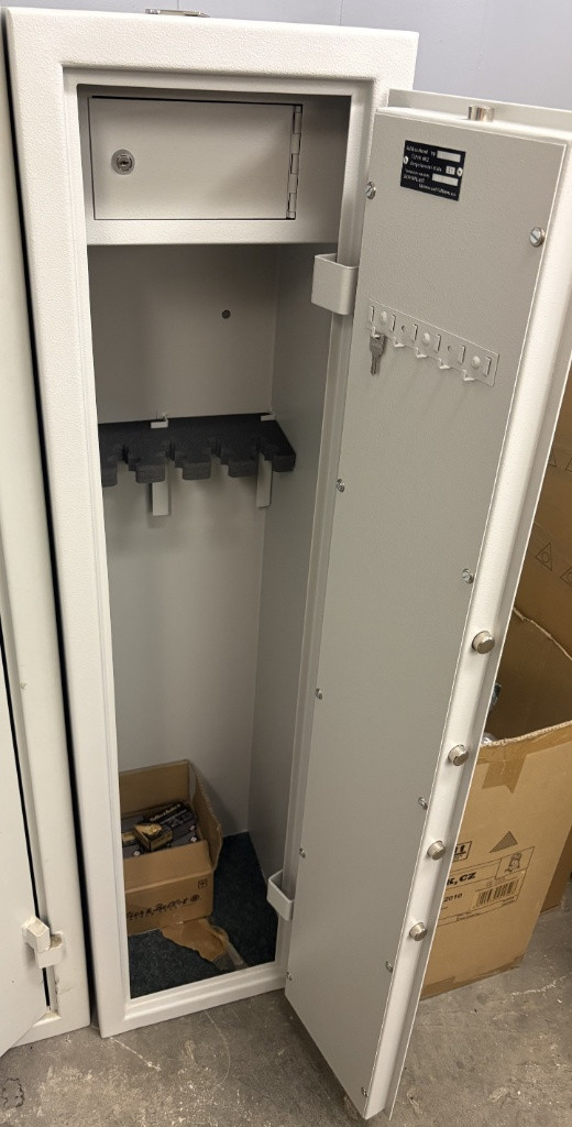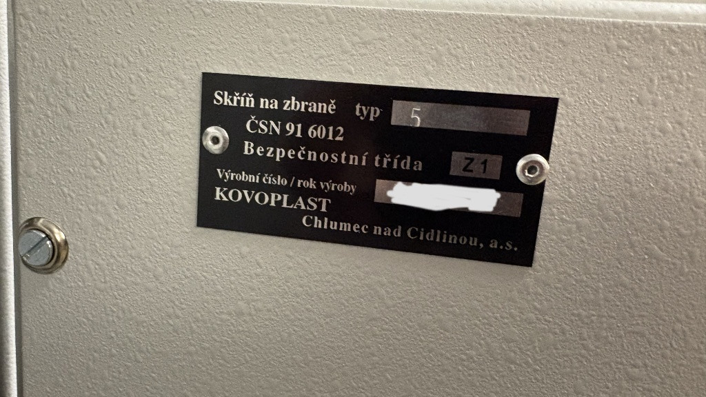 Prodám / vyměním trezor Kovoplast SNZ5 Prodám nebo vyměním za větší certifikovanou skříň na zbraně (max 10 kusů) Kovoplast SNZ5. Skříně jsou určeny k ukládání a bezpečnou úschovu loveckých, sportovních a ostatních typů dlouhých zbraní. Uzamykání dveří skříně do tří stran zajišťuje trezorový zámek v bezpečnostní třídě A podle normy ČSN EN 1300:2014 značky STUV. Skříň splňuje požadavky odolnosti proti vloupání minimálně 15 RU podle ČSN EN 1143-1:2013. Splňuje také podmínky kladené Českou normou ČSN 91 6012:2001 a spadá tak do bezpečnostní třídy Z1. Rozměry: 350 x 1400 x 350 Váha: 65 Kg Vyměnil bych jej za větší s možností doplatku. Původní cena přes 12000 Kč. Prodej za uvedenou cenu, rozumné domluvě se nebráním.