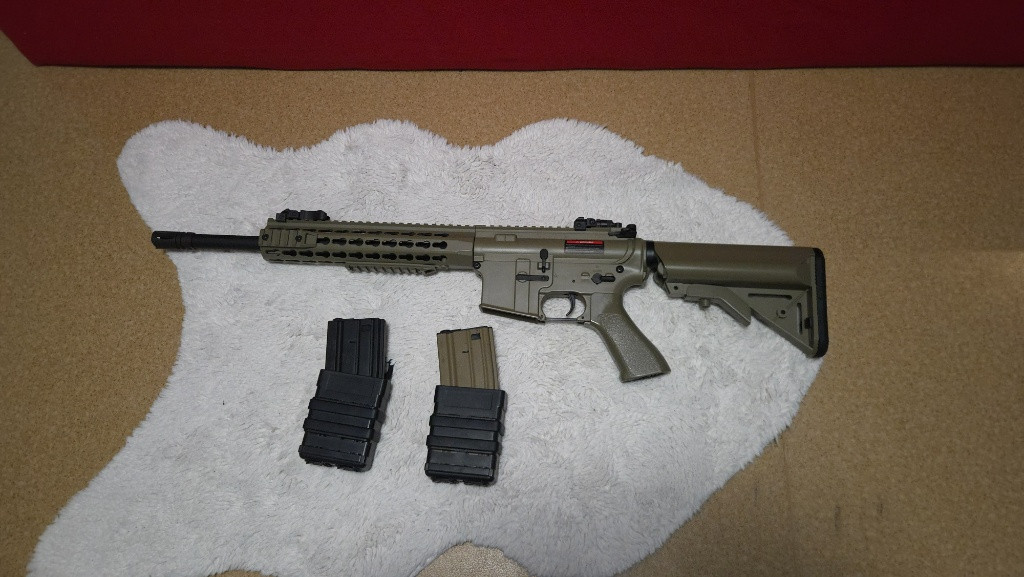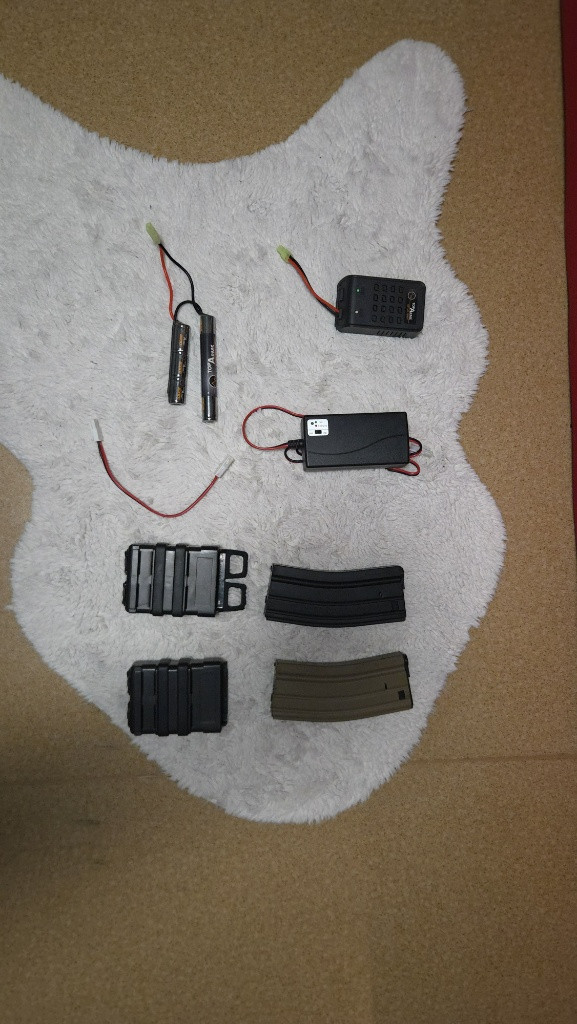 Zahrnuje: Zbraň (M4 Keymod 10” Sportline 1,6J (CM.515) - TAN), 2 zásobníky kovové high capacity na 350 kuliček, 2 polymerové a gumové pouzdra na zásobníky 2 balení kuliček 4000ks (jedno je nové a jedno je otevřené a cca 150 kuliček chybý) 1 plnička zásobníků 1 úplně nová výkonná nabíječka 1 starší náhradní nabíječka 1 nový výkonný NiMH akumulátor 1starší náhradní akumulátor + Všechny potřebné kabely k nabíječkám i akumulátorům 1 nová (jen otevřená) kukla s chráničem na pusu 1 nové ochranné brýle s možností mít pod nimi brýle dioptrické Cena všecho úplně nového 5850Kč Na ceně je možnost smlouvat :)