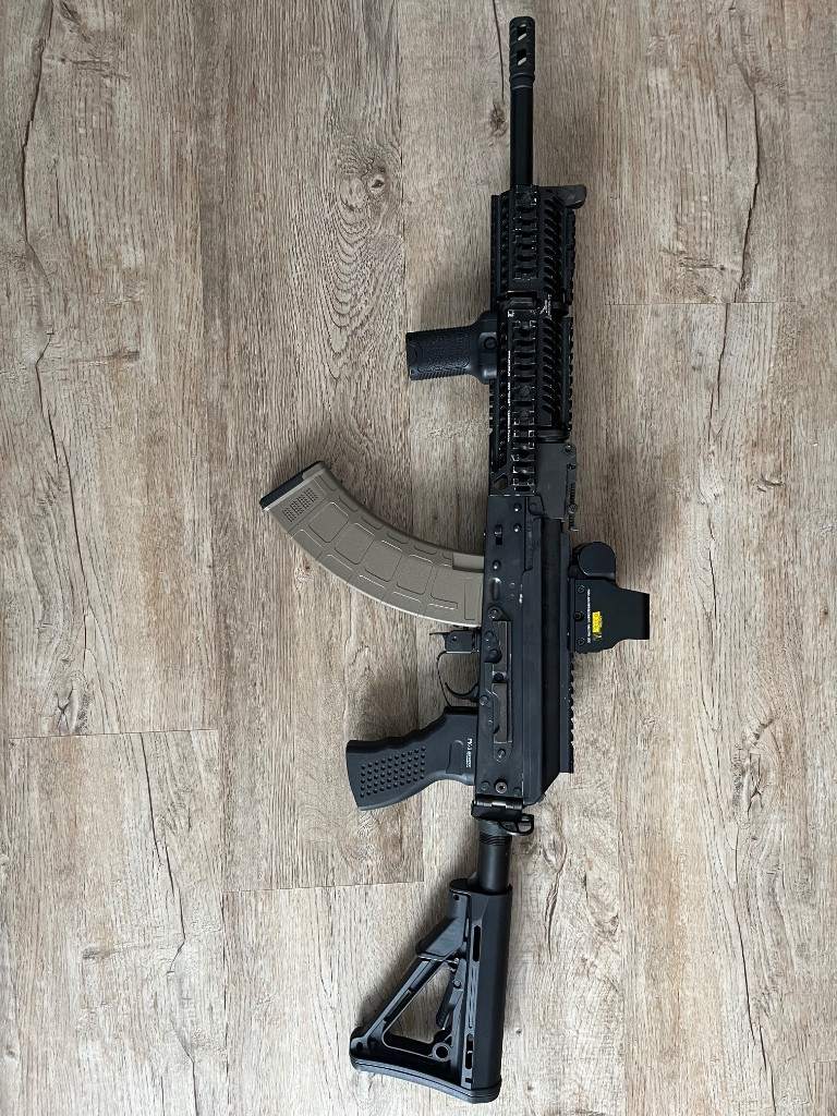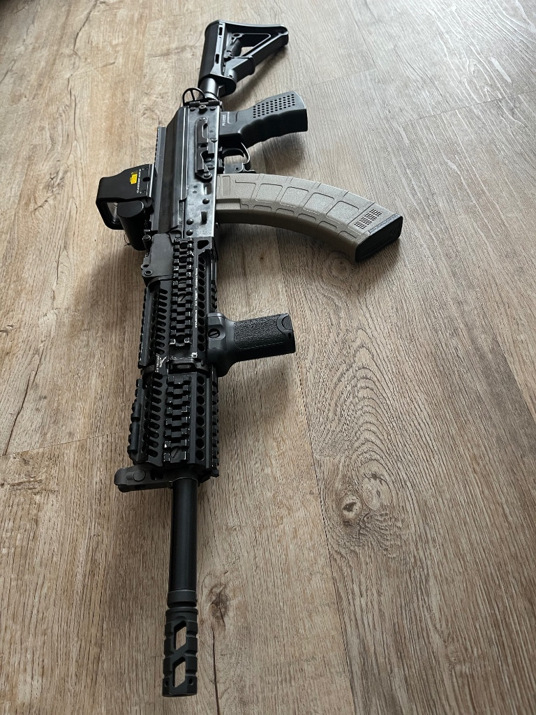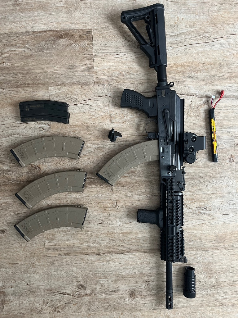 Prodám AK od firmy E&L, nejspíše 2.generace. Ke zbrani mám Zenitco doplňky včetně předpažbí viz foto. Uvnitř upgrade na M150, kola E&L 18:1, vzduchotechnika Epes/SHS, motor buď ASG nebo E&L(nejsem si jistý), Prowin komora, lepší hlaveň. Výkon 110m/s s 0,28g. Ke zbrani mám dvě baterie, 4 ks tlačných zásobníků(asi 150), ládovačka, ručka, kilomátor. Zbraň minimálně hraná, v dobrém stavu. Prodávám z důvodu nevyužití. Prodám i další vybavení - vysílačka Boageng včetně PTT tlačítka a náhlavního setu, nabíječka. CIRAS (Miltec) O ceně jsem ochoten jednat.