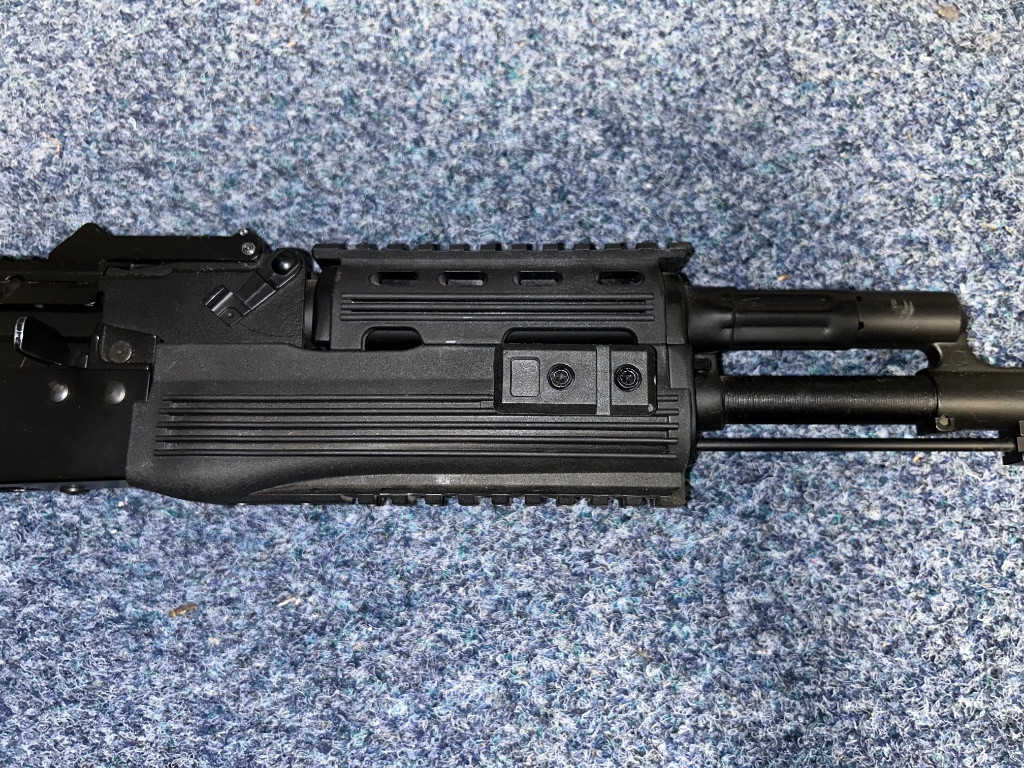 Prodávám AKS celokov. Úsťová rychlost 427 FPS. Má sklopnou pažbu a je na ni vyměněné předpažbý za polymerové s RIS lištami, také ergonomická pažbička a vyměněný horní kryt komory na baterii s RIS lištou. Přešel jsem na platformu M4, takže zbraň prodávám z důvodu nevyužití. Mam ji tak 2 roky, ale bylo o ni pečováno a není poškozená až na pár malých škrábanců. Zbraň prodám se dvěmi kovovými tlačnými zásobníky trošičku poškrábanějšími. Přidám baterii NiHM 9,6V. Zbraň při pořízení stála 4950 Kč se zásobníky a baterii prodám za 4000Kč. V případě zájmu mě prosím kontaktujte na mail: dominikkiraly007@gmail.com