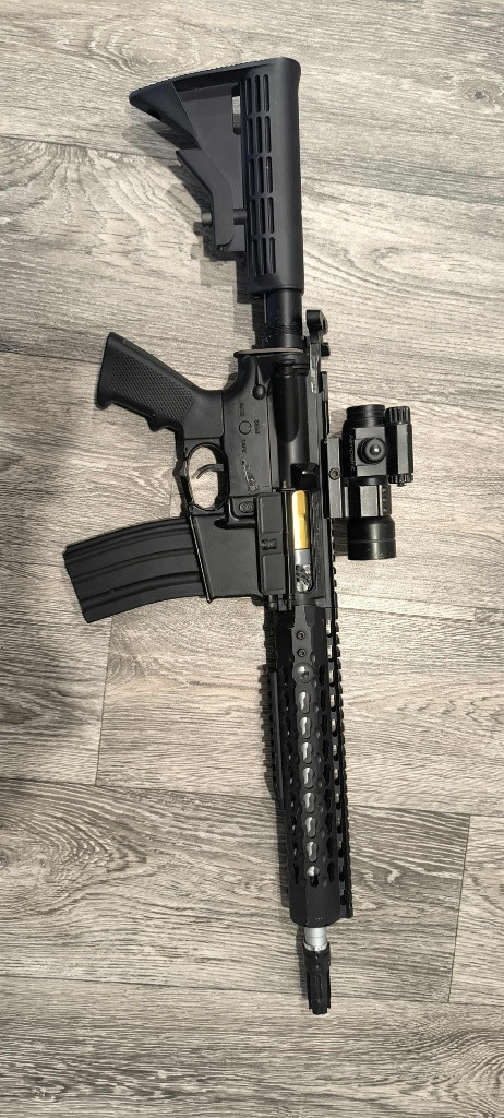 Kupovaná z druhé ruky jako náhradní v období kdy jsem měl hlavní zbraň na reklamaci. Je vidět že prošla všema světovejma válkama ale furt střílí krásně. Stačila by stříknout a bude jako nová. Já osobně měnil přepínač střelby za CNC a přidával pružinu ASG Ultimate M125 zbraň měla kolem 1.7J s 0.28g. Zbraň běží na 11.1V takže jsem byl spoko. Zbraň má rychlovýměnu pružiny ale mecháč musí ven. Zbraň bych nechal na zdi ale bohužel už toho mám tolik že něco musí z kola ven jinak mě paní zabije. Preferuju osobní předání ve Stráži Pod Ralskem a okolí. Možnost vyzkoušet. Přidám Red Dot zaměřovač. Zbraň prodávám bez baterky! Při rychlém a slušném jednání sleva jistá :)