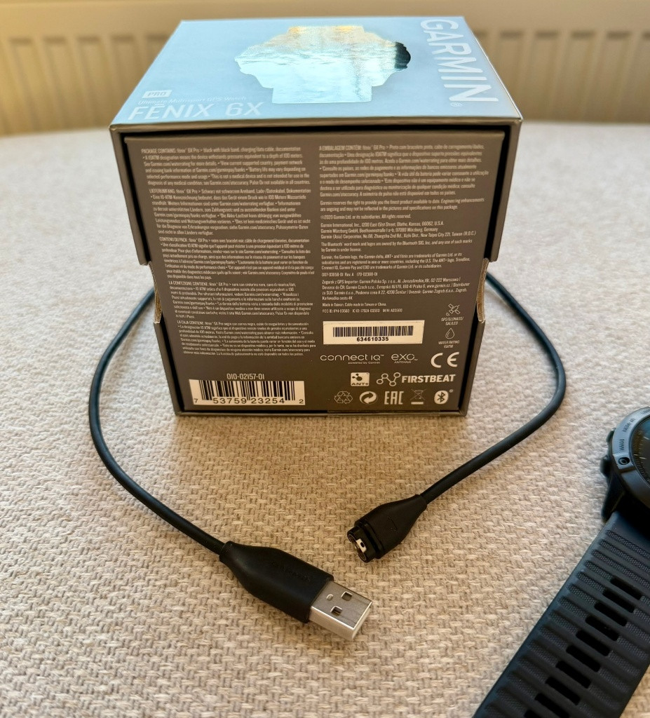 Nabízím minimálně používané chytré hodinky Garmin Fenix 6X Pro ve velmi dobrém stavu. Nošeny pouze několik týdnů, od té doby nevyužité a uložené doma. Hodinky jsou plně funkční, bez problémů, připravené k okamžitému používání. Prodávám z důvodu, že nejsem typ, který by hodinky pravidelně nosil – věřím, že je někdo využije naplno. Koupeno v ČR, velmi dobrý stav (minimální známky používání), originální balení, původní řemínek + nabíjecí kabel. Možnost osobního předání nebo zaslání (Zásilkovna apod.).