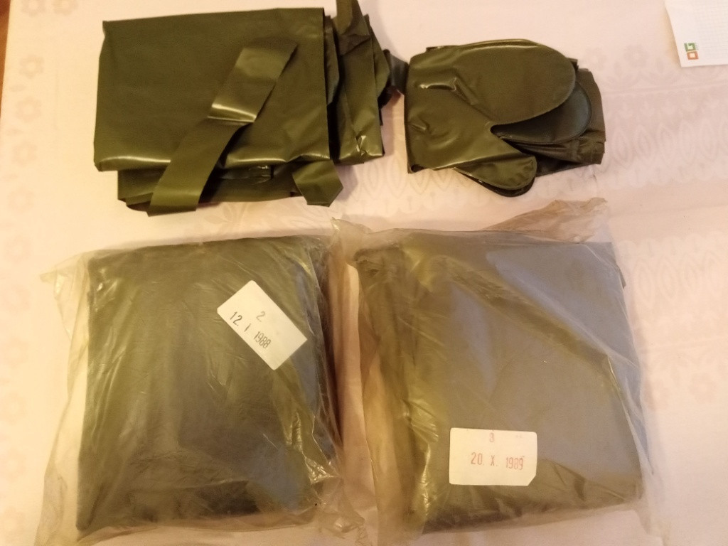 Prodám protichemickou pláštěnku , používanou v ČSLA , velikost 2 a 3 , dosud nepoužita , včetně rukavic a obuvi . Cena 125 Kč .