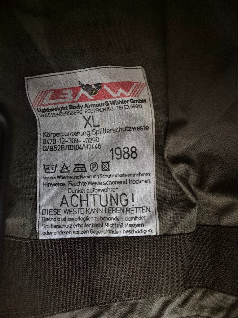 Starší model protistřepinové vesty. Včetně balistické výplně.